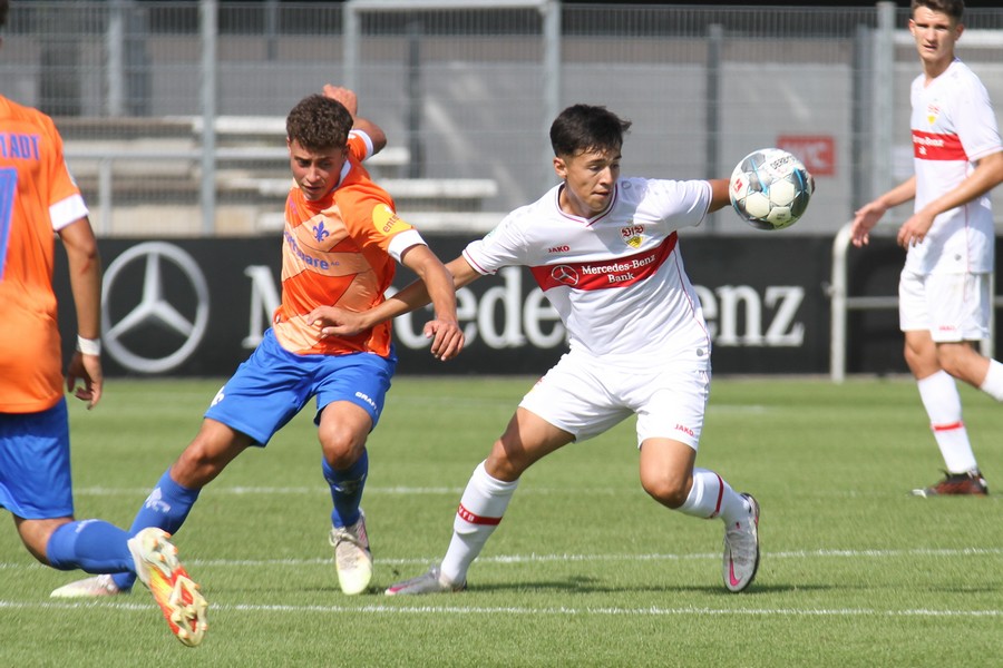 Was der U19 am Samstag gelang, konnte die U17 noch toppen. Die Jungs von Nico Willig konnten gegen Frankfurt einen 2:0 Erfolg verbuchen. Zum Saisonauftakt am Sonntagnachmittag setzte die U17 gleich mal ein dickes Ausrufezeichen. Mit 7:0 ging das Team von Markus Fiedler am Ende vom Feld. Die ersten fünf Minuten gehörten den Gästen, danach übernahm der VfB die Kontrolle. Nach 12 und nach 16 Minuten traf Stuttgart ins Schwarze. Mit dem Halbzeitpfiff fiel das dritte Tor für die Schwaben. Nach dem Seitenwechsel dominierte die U17 des VfB nach Belieben. Es folgten noch weitere vier Treffer in den zweiten 40 Minuten. Der VfB war immer schneller am Ball, jeder Angriffsversuch der Darmstädter wurde sofort unterbunden. Markus Fiedler sagte: “Das ist der beste Auftakt, den man sich wünschen kann. Wir haben guten Offensiv-Fußball gezeigt und eine Fülle an Chancen herausgespielt.”