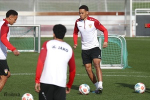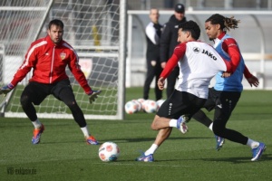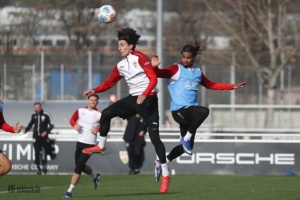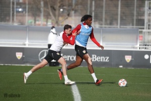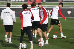 Fast schon ein historisches Event gab es am Dienstagnachmittag am Trainingsgelände der Schwaben. Ein öffentliches Training ist aufgrund der vielen Englischen Wochen Mangelware geworden. Bis auf Josha Vagnoman, der bereits am Sonntag passen musste und der schon längere Zeit verletzte Jovanovic, waren alle an Bord, die nicht für die zweite Mannschaft im Einsatz waren. Auch Jeff Chabot konnte wieder mitwirken, trainierte nach dem Warm-Up und Eckle dann allerdings individuell weiter. Die Startelf vom Sonntag hatte schnell wieder Feierabend. Undav, Demirovic und Co. schrieben schon mal Autogramme, während die Kollegen noch aufs Halbfeld spielten. In der ersten Übung fiel vor allem Daxo Zagadou auf, der immer wieder durch starke Schüsse einnetzte. Er konnte die komplette Einheit ohne sichtliche Probleme mitmachen. So wird er sicherlich bald wieder ein Kandidat für den Kader sein.