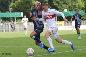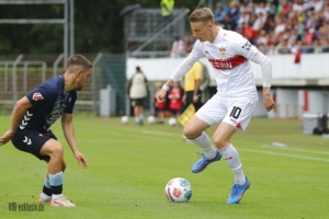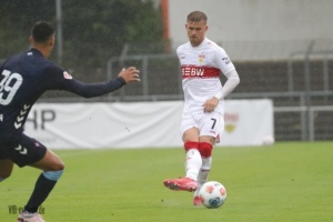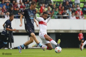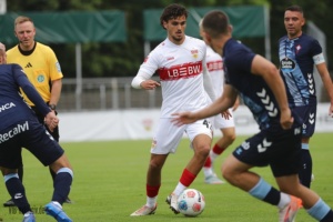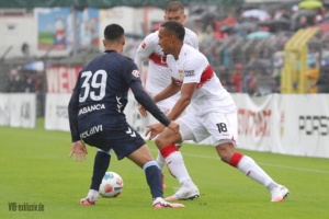Erst Starkregen dann Rudelbildung – Jamie Leweling trifft und führt den VfB zum Testspielerfolg