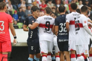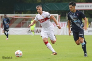 Nach einem 7:1 und einem 4:4 in den vorherigen Tests, konnte der VfB gegen den spanischen Erstligisten Celta de Vigo ein 2:1 Erfolg erringen. Das Spiel ging über zwei Stunden, aufgeteilt in vier Mal 30 Minuten. Enzo Millot war gar nicht im Kader, ebenso wie Daxo Zagadou, der vermutlich auch nicht mit ins Trainingslager fährt. Bei Zagadou zwickt wieder etwas im Knie, das genau beobachtet wird. Diehl und Nübel, die beim Test ebenfalls nicht spielten, werden aber wohl an den Tegernsee mitreisen. Als die Mannschaften in Reutlingen gerade den Platz betreten wollten, fing es wie aus Eimern an zu regnen. Der Anpfiff wurde 15 Minuten nach hinten verlegt. Von Minute zu Minute wurde der Regen schwächer. Stuttgart startete mit Undav, Demirovic, Leweling und Mittelstädt und machte es ganz ordentlich. Die internationale Härte bekamen die Schwaben recht schnell zu spüren. Der Gegner ging im Test recht ruppig zu Werke, was die ein oder andere Rudelbildung und Gelbe Karte nach sich zog. Mit einem sehenswerten Treffer brachte schließlich Jamie Leweling den VfB in Front. Nach einer Stunde wurden die Seiten gewechselt und auch jede Menge Personal. Die NLZ-Spieler bekamen wieder ihre Chance und machten es sehr ordentlich. Ein kleines Missgeschick des Keepers von Celta de Vigo brachte dem VfB das 2:0 ein, Eigentor. Kurz vor dem Ablauf der 120 Minuten, landete ein ungeschickter Ball von Stenzel ebenfalls im eigenen Netz. Der VfB verließ den Platz als Sieger. Am Montag geht es für eine Woche ins Trainingslager.