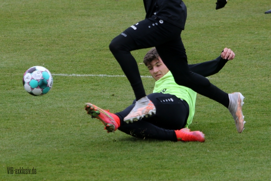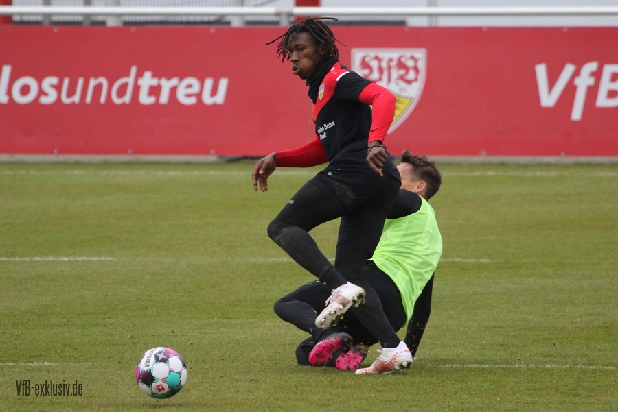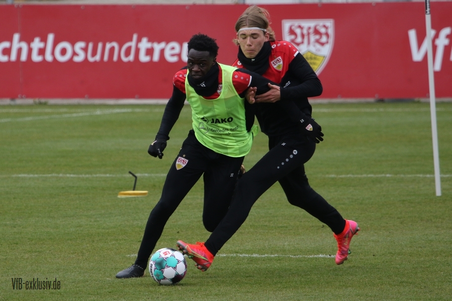 Die Verantwortlichen des VfB sind trotz der jüngsten Niederlagen nicht unzufrieden mit den Leistungen. Am Tag nach dem knappen 1:2 bei Union Berlin trainierten wie so üblich die Spieler, die wenig oder gar nicht gespielt hatten. Mit dabei Castro und Kempf, die womöglich schon am Mittwoch gegen Wolfsburg wieder ins Team rücken. Marc Oliver Kempf wird nach seiner Gelb-Sperre und durch die fünfte Verwarnung von Mavropanos wieder in die Dreierkette rutschen. Ein Spieler, der bei der U21 ebenfalls am Samstag in Offenbach nicht zum Einsatz kam, aber fit ist, ist Mo Sankoh. Er trainierte am Sonntagmorgen mit den Profis. Immer wieder wird spekuliert wann der 17-Jährige nach seinen Trainingseinheiten bei der Lizenzspielermannschaft sein Profidebüt geben wird. Er ist zwar Mittelstürmer, aber ein komplett anderer Typ als Sasa Kalajdzic, den er sicher nicht ersetzen wird, doch Mohamed Sankoh könnte auch eine Rolle auf den Außenbahnen spielen. Er bringt Tempo und Tiefe mit, Dinge die dem VfB in der Offensive seit der Verletzung von Silas Wamangituka vor allem auf der rechten Seite fehlen. Sollte Sankoh am Dienstag beim Spiel der U21 gegen Hoffenheim II auf dem Aufstellungsbogen erneut fehlen, könnten für Mittwoch gegen Wolfsburg die Spekulationen und letztlich die Chancen steigen, dass er im Kader von Pellegrino Matarazzo steht.