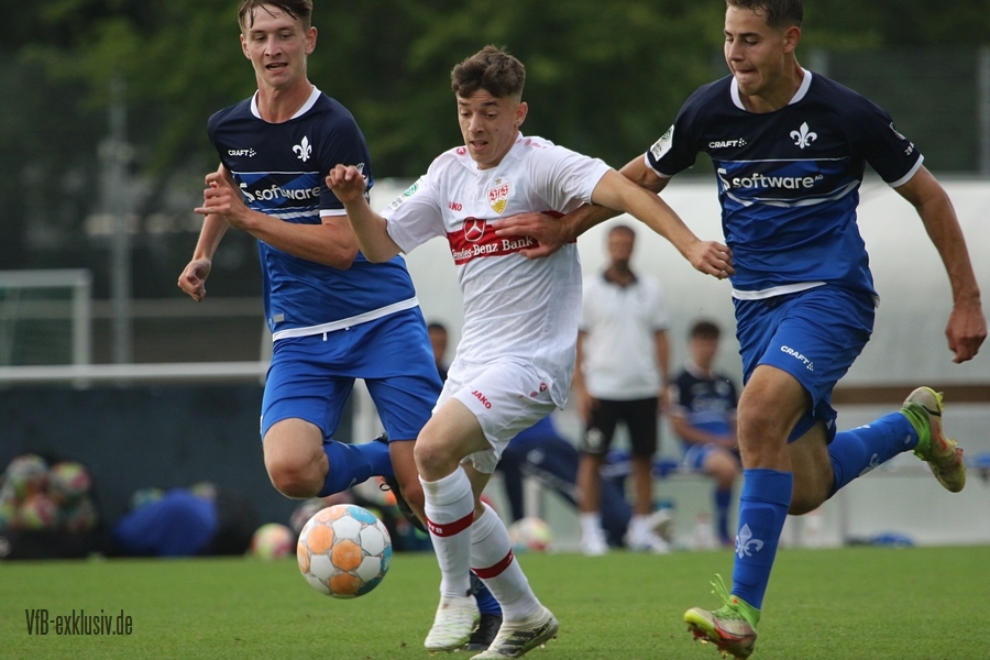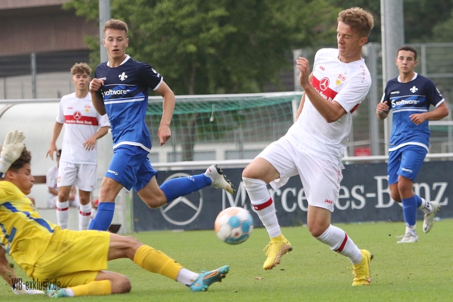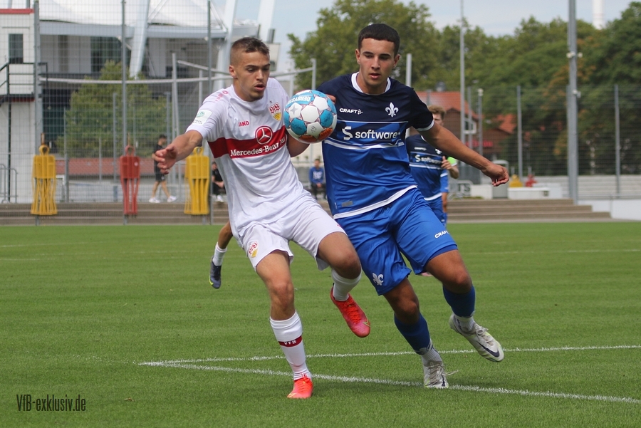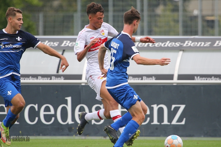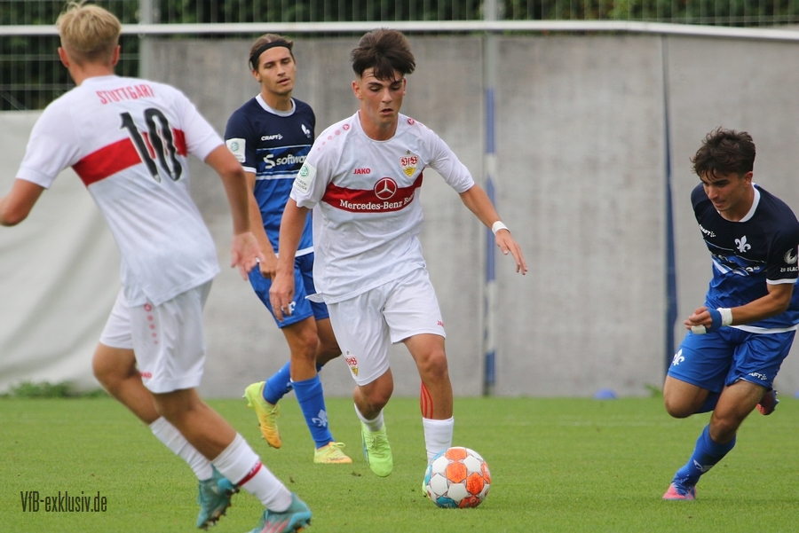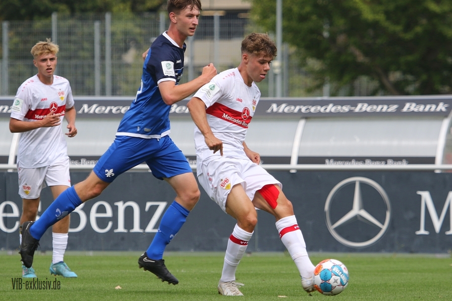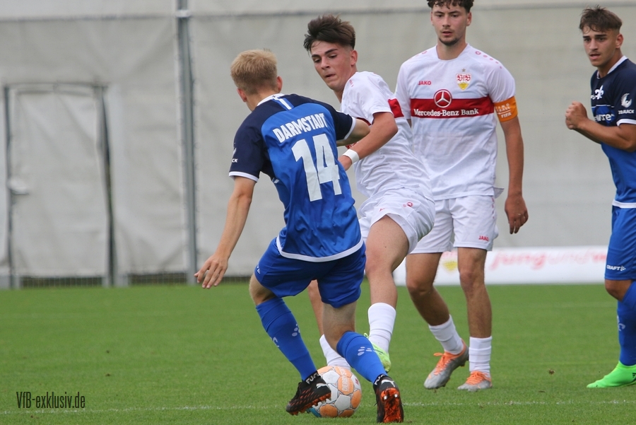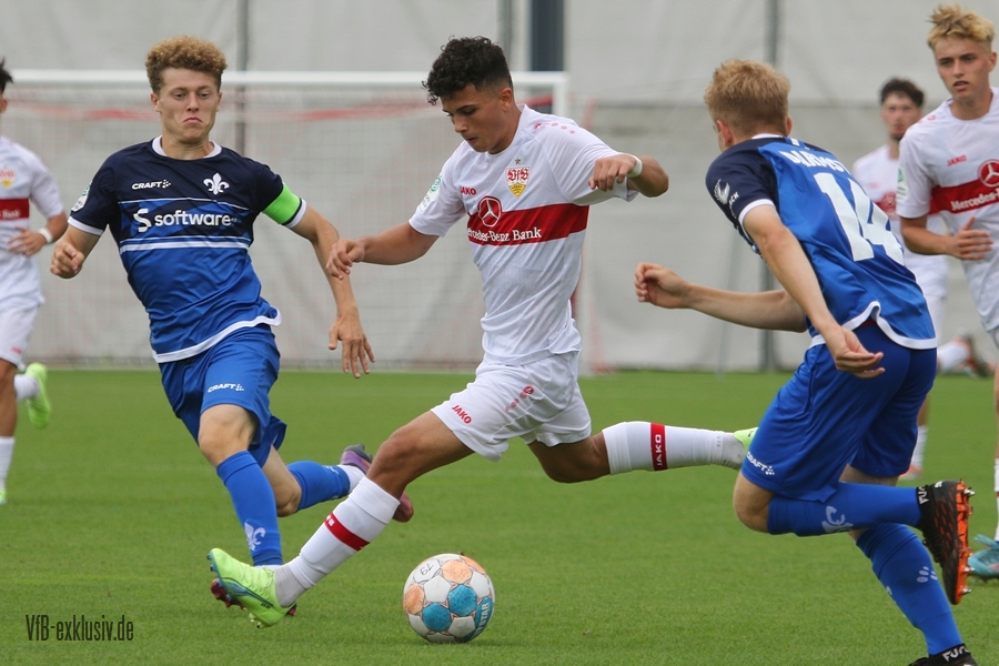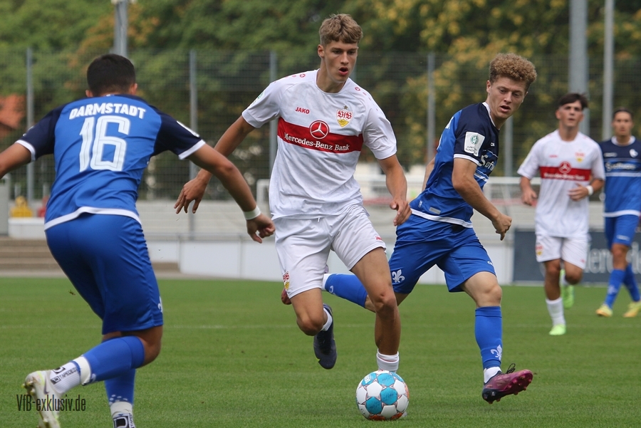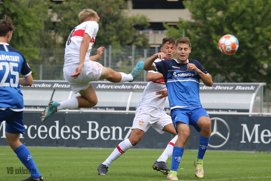 Bei den Bundesligateams des NLZ war zuletzt ein wenig Sand im Getriebe. Die U17 hatte sich am Samstag in Regensburg allesdings wieder von ihrer Glanzseite gezeigt und 5:0 gewonnen. Auch bei der U19 lief es noch nicht so rund in letzter Zeit, wie man es von den hochtalentierten Jungs gewohnt ist. Doch auch das Team von Nico Willig konnte daheim gegen Darmstadt wieder gewinnen. Es reichte sogar eine gute Halbzeit, um am Ende mit 3:1 den Platz als Sieger zu verlassen. Das 1:0 von Luca Battista, gleich zwar Darmstadt aus, doch Maximilian Wagner konnte den VfB wenige Minuten später erneut in Führung schießen, auch der dritte VfB-Treffer ging auf das Konto von Wagner. Im zweiten Durchgang hätten die Schwaben das Spiel gegen Ende der Partie noch höher gewinnen können, doch die zweite Halbzeit hatte insgesamt weniger Höhepunkte zu bieten, als die ersten 45 Minuten. Um das Bild des NLZ abzurunden, die U21 spielte 1:1 in Koblenz.