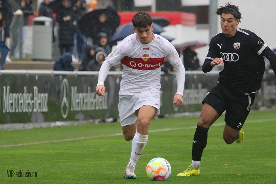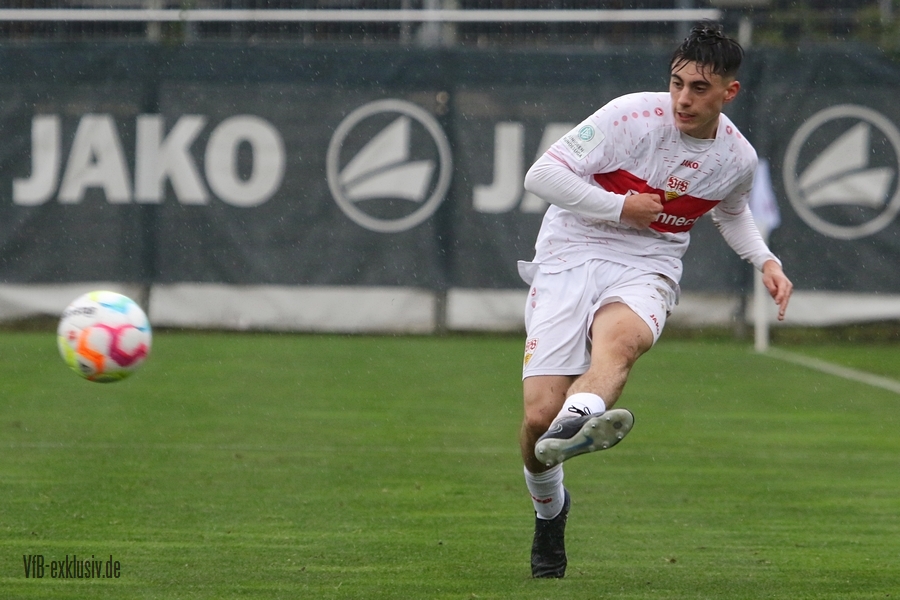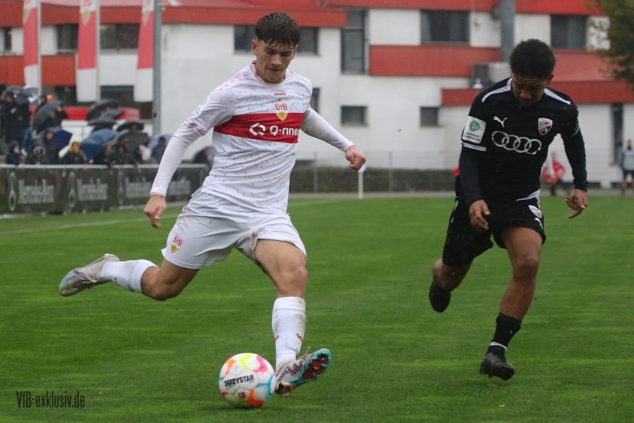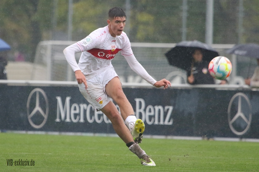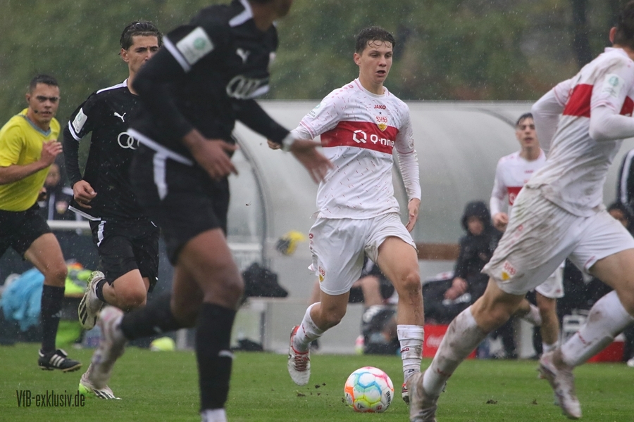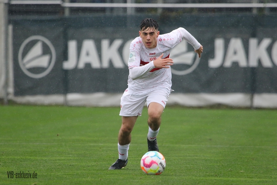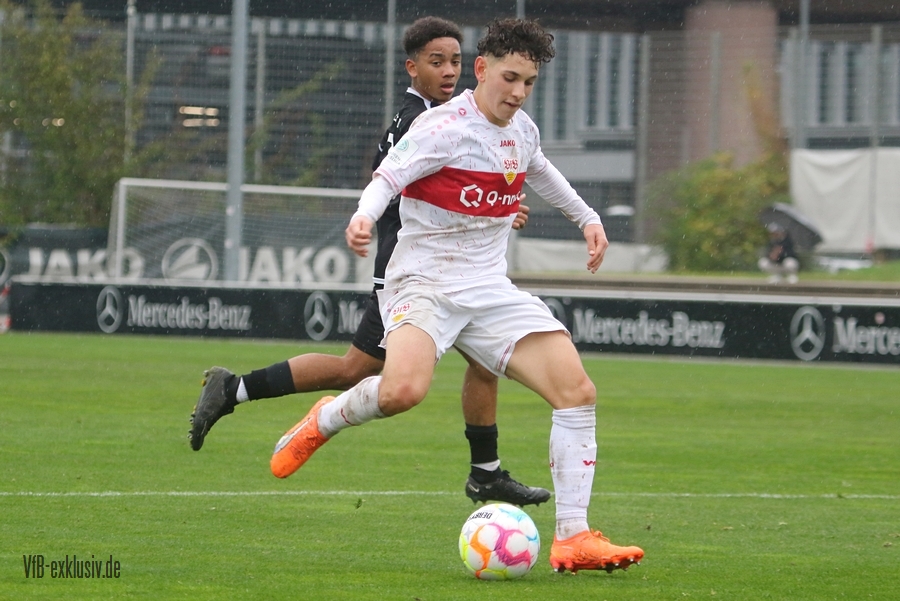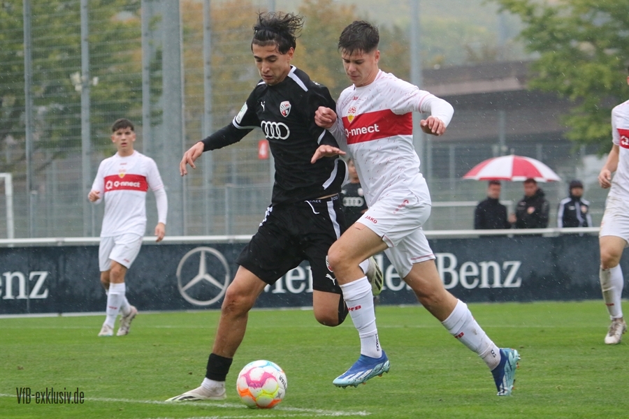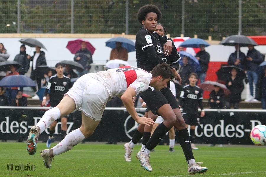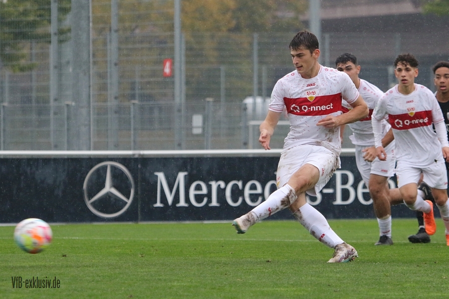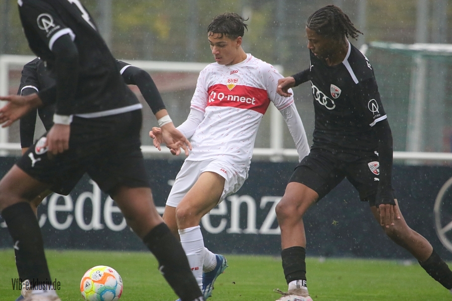 Mit dem FC Ingolstadt war der Tabellenletzte der B-Junioren-Bundesliga zu Gast beim Spitzenreiter VfB. Im Dauerregen von Cannstatt zeigte die Elf von Jan Kirchhoff von Beginn an wer am Ende das Spiel gewinnen will und wird. Ein früher Elfmeter für Stuttgart brachte die Schwaben durch Matheos Tsigkas in Führung. Es entwickelte sich ein Spiel auf ein Tor mit einigen guten Tormöglichkeiten, die erstmal ungenutzt blieben. Fünf Minuten vor der Pause, konnte Tuncay Durna eine Flanke per Kopf verwerten. Nach dem Seitenwechsel das gleiche Bild. Keeper Florian Hellstern erlebte einen ruhigen Nachmittag. Mirza Catovic schraubte das Ergebnis per Abstauber auf 3:0. Die Schwaben ließen nicht locker, Ingolstadt stand in der Defensive ordentlich, doch es war erneut Tuncay Durna, der aus spitzem Winkel zum 4:0 traf. Ein zweiter Doppeltorschütze hieß Mirza Catovic. Nach einer Ecke köpfte er zum 5:0-Endstand ein. Danach war direkt Schluss. Der VfB hat nach elf Spieltagen, neun Siege und zwei Remis auf dem Konto und führt die Tabelle mit vier Punkten Vorsprung vor Nürnberg an.