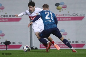 Englische Woche in der 3. Liga und der VfB wollte die 0:5 Pleite in Cottbus vergessen machen. Die erste Halbzeit ist schnell erzählt. Sowohl auf der einen, als auch auf der anderen Seite gab es wenig nennenswerte Chancen. Wiesbaden hatte nach einer starken halben Stunde eine Doppelmöglichkeit zur Führung. Ameen Al-Dakhil und Niko Nartey standen von der Bundesligaelf auf dem Rasen, in der zweiten Halbzeit löste Leonidas Stergiou, Al-Dakhil ab und feierte so sein Comeback nach langer Verletzungspause. Er machte seine Aufgabe solide, hatte sogar eine Schusschance. In der Schlussphase ging es auf beiden Seiten nochmals zur Sache, beide Teams hatten Möglichkeiten. Mo Sankoh hatte allerdings die besten Chancen, gleich dreimal hatte er die Führung und womöglich dann den Siegtreffer auf dem Fuß. Doch er scheiterte am Keeper oder schob den Ball knapp am Tor vorbei. Einen muss er machen, es wäre sicher ein Lucky Punch gewesen, denn übers Spiel hinweg, hat das Spiel eigentlich keinen Sieger verdient.
