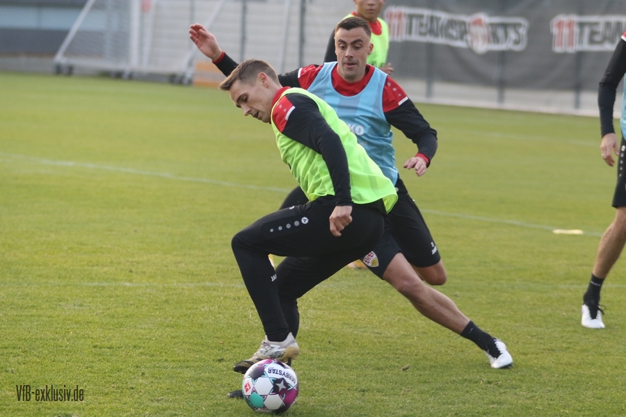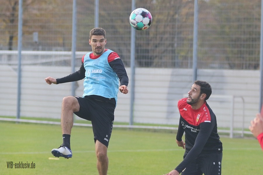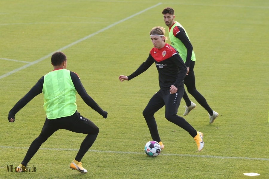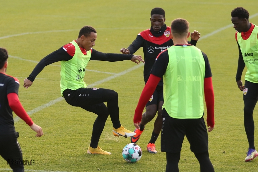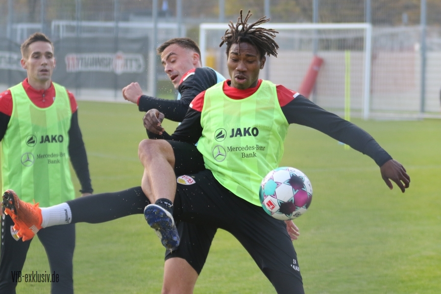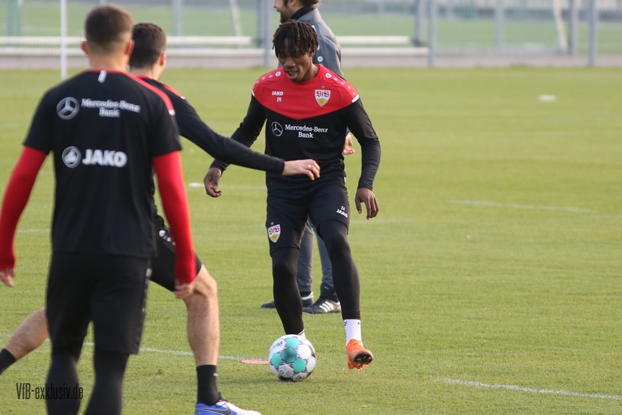 Drei volle Tage hatte Pellegrino Matarazzo seinen Schützlingen frei gegeben, ehe er am Mittwochnachmittag zur ersten Teamtrainingseinheit der laufenden Woche bat. Er und der VfB können es sich leisten, denn am kommenden Wochenende findet kein Pflichtspiel aufgrund der Länderspiele statt. Am Freitag teste der VfB gegen Heidenheim. Außerdem hatte der Coach erst kürzlich erklärt, die Länderspielpausen gerade für ein wenig längere Trainingspausen wegen der fehlenden Winterpause nutzen zu wollen. Bis auf die Nationalspieler und Langzeitverletzten waren alle Mann an Bord. Zusätzlich lud Matarazzo drei Spieler der U21 und ein Spieler der U19 zum Training ein. Keeper Sebastian Hornung, Verteidiger Matej Maglica und Mittelfeldspieler Domenico Alberico durften sich aus Frank Fahrenhorsts Team zeigen. Nico Willig schickte den Jungstar und Stürmer Mohamed Sankoh ins Rennen. Er kam mit jeder Menge Vorschusslorbeeren von Stoke City an den Neckar, gilt als eines der größten Talente der Niederlande und zeigte bei seinen ersten Auftritten für die U19 des VfB auch warum. Bei Greuther Fürth traf er doppelt, gegen die Bayern bereitete er zwei Treffer von David Hummel vor. Auch im Training der Profis gab der 17-Jährige Vollgas, sprintete jedem Ball hinterher, forderte bei der Spielform die Bälle, gewann die Duelle gegen die Keeper und vollstreckte. Es scheint nur eine Frage der Zeit zu sein, wann er aus seinem Gastauftritt im Profikader eine Dauerbesetzung macht. Auch die Spieler aus der U21 hatten starke Szenen, ihre Einladung zum Profitraining hatten sie sich über gute Leistungen in der Regionalliga bereits vorab verdient. Erfreulich sei noch vermerkt, dass Dinos Mavropanos nach seiner Verletztung zu einer individuellen Einheit mit dem Fitnesscoach auf dem Platz stand.
