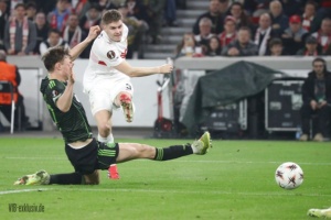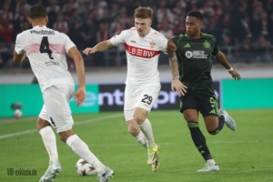 Der Heimnimbus in der Europa League ist verloren gegangen, alle Spiele konnten bisher gewonnen werden, gegen Celtic fehlte von Beginn an ein wenig die Spannung. Das Tor des Tages fiel bereits mit dem ersten Angriffszug der Schotten. Fortan rannte Stuttgart dem Rückstand hinterher. Die Schwaben machten das Spiel, ohne zu glänzen. Sebastian Hoeneß meinte nach dem Match, dass es von Box zu Box ein ordentlicher Auftritt war, die Szenen im Strafraum waren nicht zwingend genug, einige Chancen konnte Celtics Keeper auch vereiteln. Der zweite Durchgang war diesbezüglich nochmals griffiger. Das lag auch an den Aktionen von Chris Führich, der nach dem Seitenwechsel ins Spiel kam. Ihm gelang auch der Treffer zum 1:1, doch eine Abseitsstellung bremste ihn aus. Sein Coach war auch damit zufrieden, dass Chancen und Tore immer wieder vorhanden sind, doch auch bezogen aufs Hinspiel und in Heidenheim, würden sie nicht alle zählen. So auch der Treffer von Deniz Undav, auch hier lag eine Abseitsstellung im Angriff des VfB vor. So begann das Match, wie es nicht schlechter beginnen konnte und endete was das Resultat betrifft, nicht mit dem Ergebnis, was sich die Schwaben vorgestellt hatten. Für den Coach ein Spiel, das man eigentlich nicht verlieren darf. Für Stuttgart bedeutet es dennoch eine Runde weiter zu sein. Nun wartet Braga oder Porto im Achtelfinale