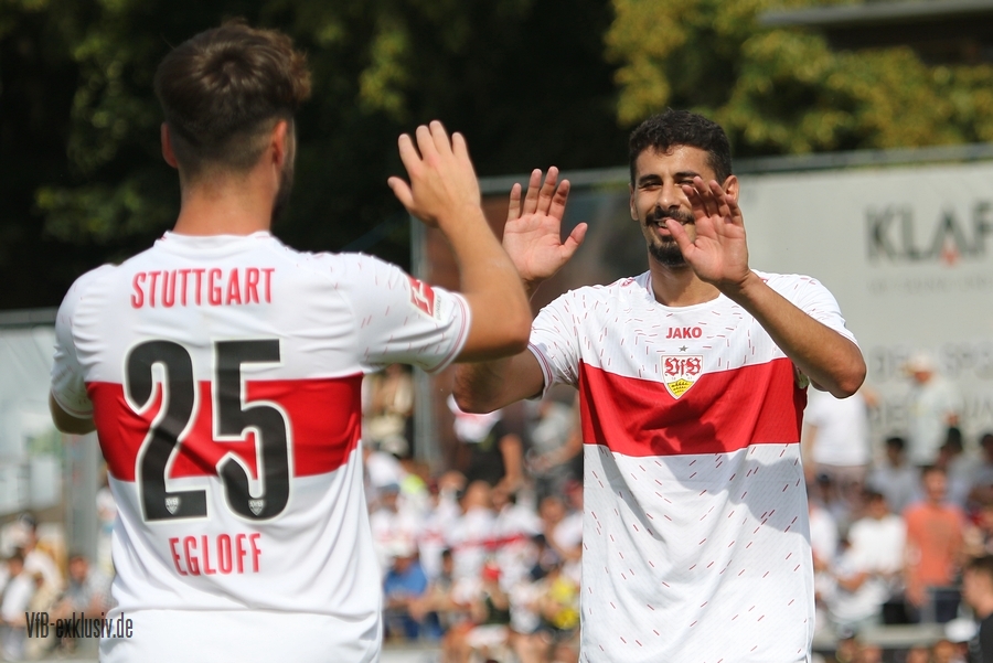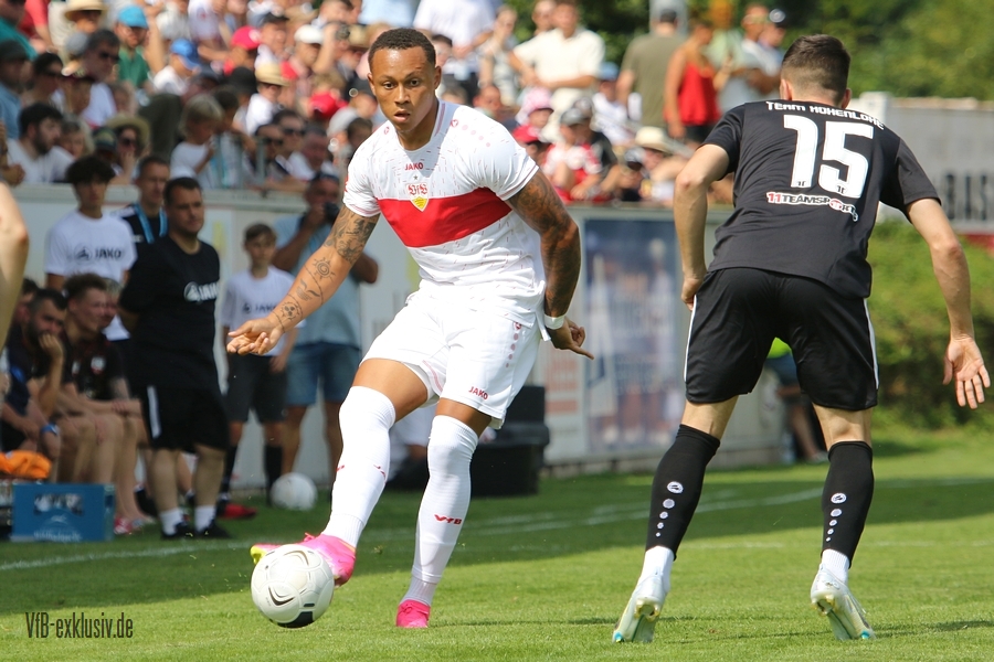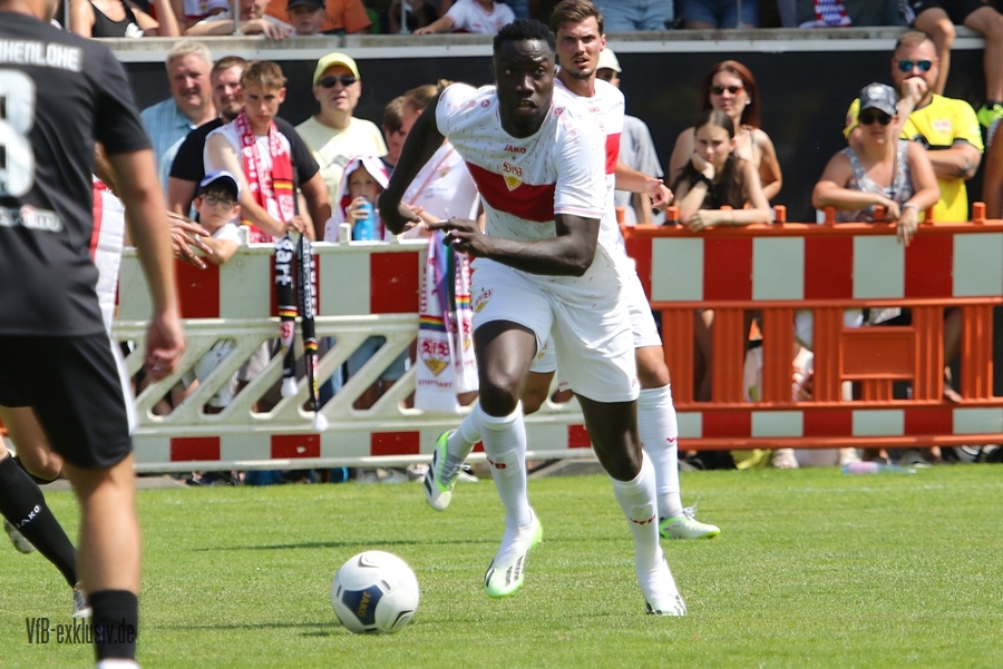 Nach nur wenigen Trainingseinheiten, stand für den VfB das erste Testspiel an. Gegen eine Auswahl aus Spielern von Hohenlohe taten sich die Cannstatter zu Beginn und durch die erste Halbzeit hinweg recht schwer. Chancen waren da, doch der Keeper der Gastgeber erwischte einen Sahnetag und warf sich in jeden Ball. Auch Hohenlohe hatte je Halbzeit eine Chance, im zweiten Durchgang rettete Seimen den VfB vor dem Rückstand. Zur Pause fielen keine Tore. Einen kleinen Schreckmoment erlebte Millot, der kurze Zeit behandelt werden musste, es ging aber weiter für ihn. Nach dem Seitenwechsel schickte Trainer Sebastian Hoeneß eine komplett neue Elf auf den Platz. Mit Massimo, Dias, Egloff und Sankoh wurde das Spiel schwungvoller. Die Tore für den VfB fielen spät. Roberto Massimo bediente Mo Sankoh, der das erste Tor des Tages schoss, wenig später legte Gil Dias nach. Den Schlusspunkt setzte erneut der Leihrückkehrer Sankoh, der eine Hereingabe von Neuzugang Maxi Mittelstädt verwertete. Gute erste Argumente, um beim VfB weiter auf Torejagd zu gehen. Insgesamt war noch ein wenig Sand im Getriebe, die Hohenlohe Auswahl machte es aber auch gut. Der zweite Test wird nach einer kompletten Trainingswoche sicher schon anders aussehen.