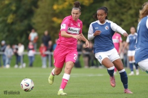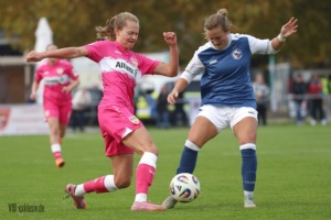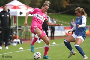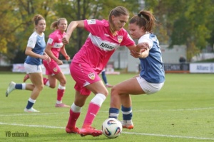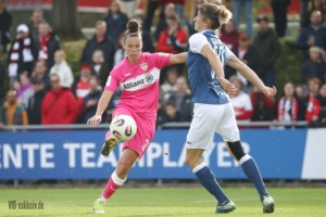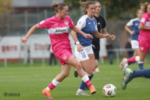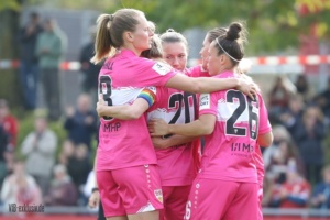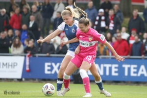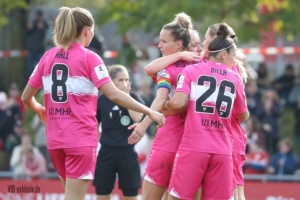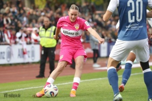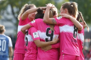 Nach dem Wahnsinn von Mainz, als das Team von Heiko Gerber ein 0:4 in ein 5:4 drehte, stand nun wieder ein Heimspiel an. Die ehemalige Top-Mannschaft im deutschen Frauen-Fussball, Turbine Potsdam, war zu Gast und ging schnell mit 1:0 in Führung. Im ersten Durchgang taten sich die ganz in Pink spielenden VfB-Frauen noch ein wenig schwer. Einige ungenauen Pässe, gute Balleroberungen der Gäste waren verantwortlich, dass der VfB in Halbzeit eins leer ausging. Doch wie in Mainz, drehten die Mädels auf und kamen nach der Pause zu Chancen. Jana Beuschlein schlug fünf Minuten nach Wiederbeginn zu, die eingewechselte Julia Glaser köpfte den Siegtreffer wiederum gut fünf Minuten später. Zwar hatte Potsdam noch die ein oder andere gefährliche Szene für das Tor von Kiara Beck, doch ein Treffer gelang ihnen nicht mehr. Die Schwaben sind einen Punkt hinter dem SC Sand auf Platz zwei, haben aber im Gegenzug vier Punkte Vorsprung vor dem VfL Bochum.