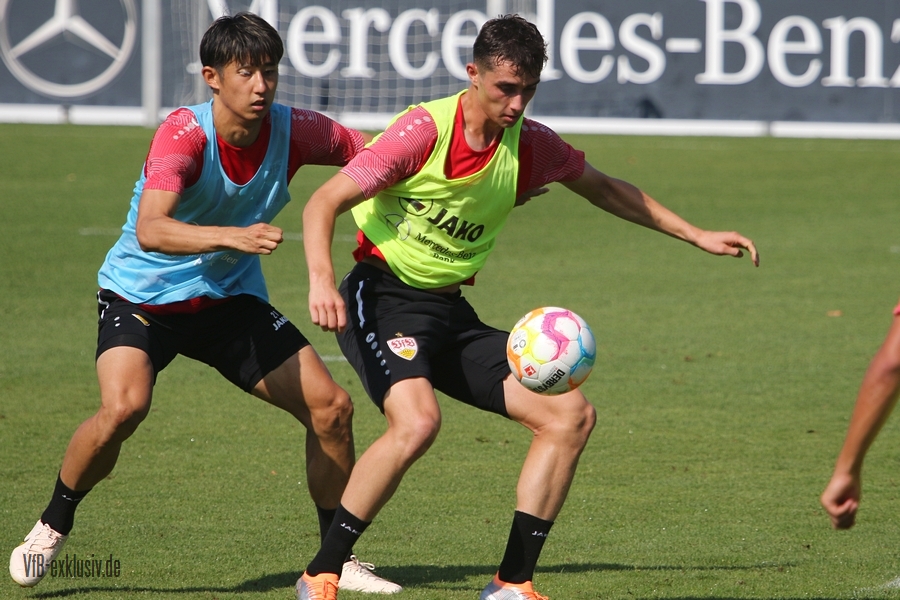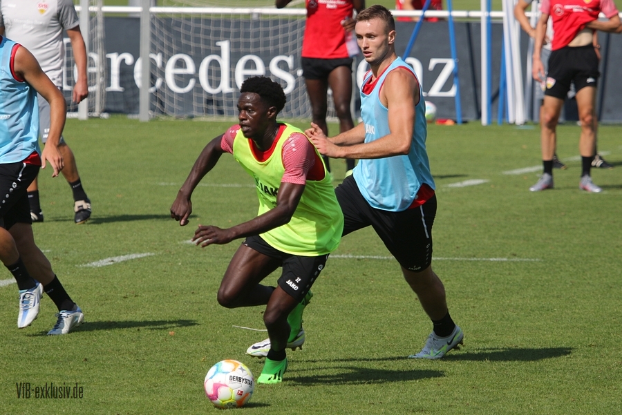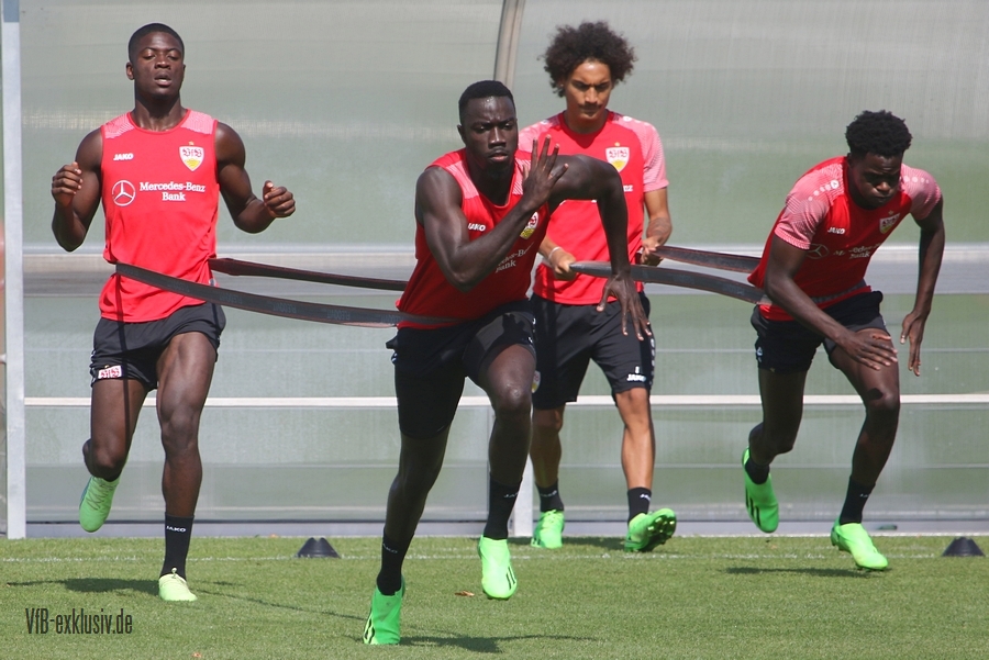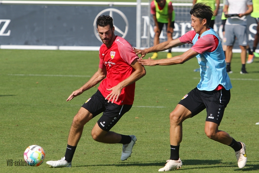 Die Jungs von Pellegrino Matarazzo starteten am Dienstagnachmittag in die Vorbereitung auf das Heimspiel gegen den SC Freiburg. Nicht alle waren im Teamtraining. Vagnoman, Mavropanos und Karazor trainierten individuell auf dem Nebenplatz, später kam Klimowicz und Perea hinzu. Kuol, Aidonis und Klement waren am Sonntag bei der U21 im Einsatz, Sosa war nicht zu sehen. Coulibaly ist noch angeschlagen. Bei hochsommerlichen Temperaturen ging es erst in einen Pass-Wettbewerb. Drei Teams kämpften darum, wer am Ende den Ball am schnellsten einmal nach hinten, wieder nach vorne und ins kleine Tor befördert. Wer am Ende als Sieger hervorging, ließ sich nicht so richtig ausmachen, denn es jubelte jede Gruppe einmal. Der Gesamtsieg ging aber wohl an Tomas, Ahamada und Co. Dieser Spaß war bei der Spielform dann allerdings vorbei. Die Spielfreude merkte man den Spielern dennoch an. Vor allem Endo, Millot und Silas wollten es wissen und tankten sich immer wieder durch die Reihen. Die anderen Spieler standen ihnen allerdings in kaum etwas nach. Jeder biss bei über 30 Grad auf die Zähne. Man merkte, die Herausforderer um Egloff und Kastanaras wollen mehr Einsatzminuten und bearbeiteten ebenfalls jeden Zentimeter des Rasens am Clubzentrum. Da wurde gegrätscht, mit Händen und Füßen gearbeitet, gehalten, gezogen und am Ende auch schöne Tore geschossen. Sasa Kalajdzic packte einen Fallrückzieher aus. Doch auch die Abwehr konnte einiges wegblocken. Letztlich standen die Jungs über 90 Minuten auf dem Platz, die Autogrammstunde am Schluss der Einheit nicht mitgerechnet.
