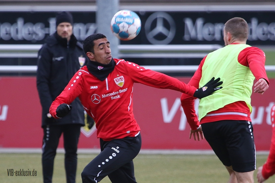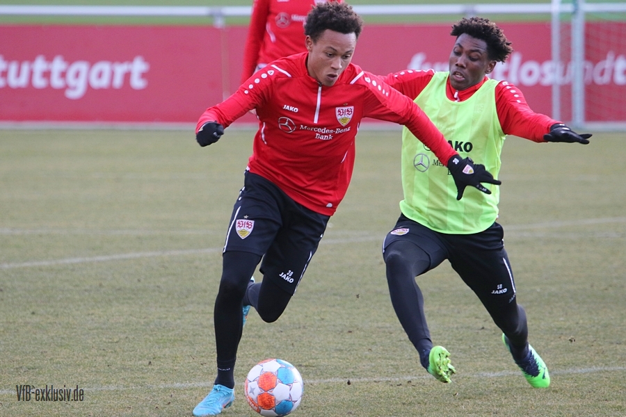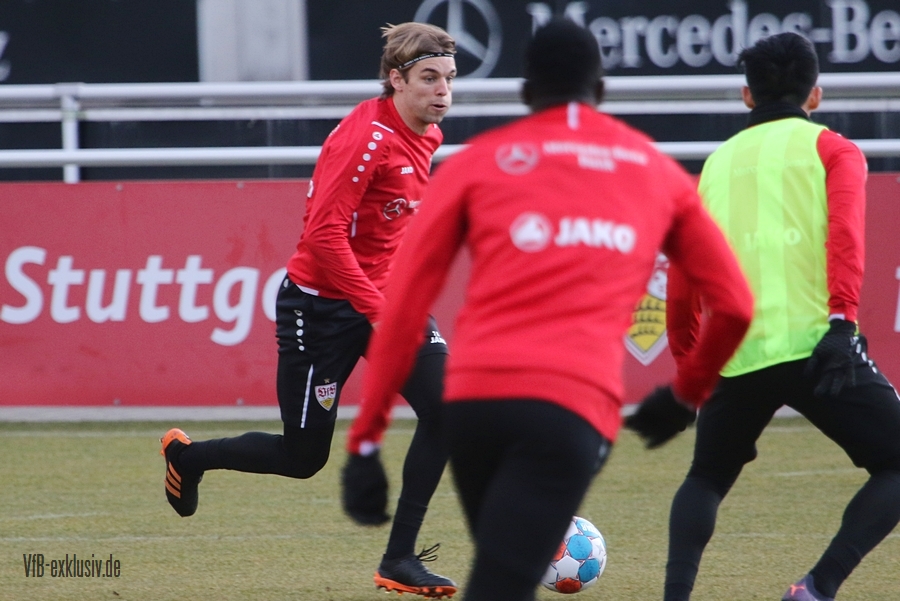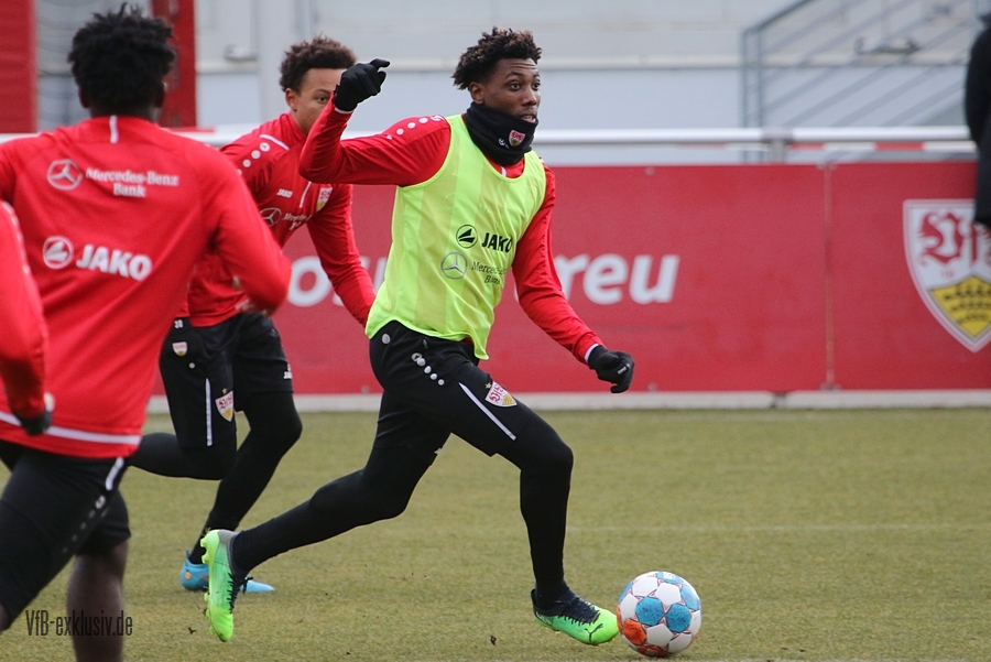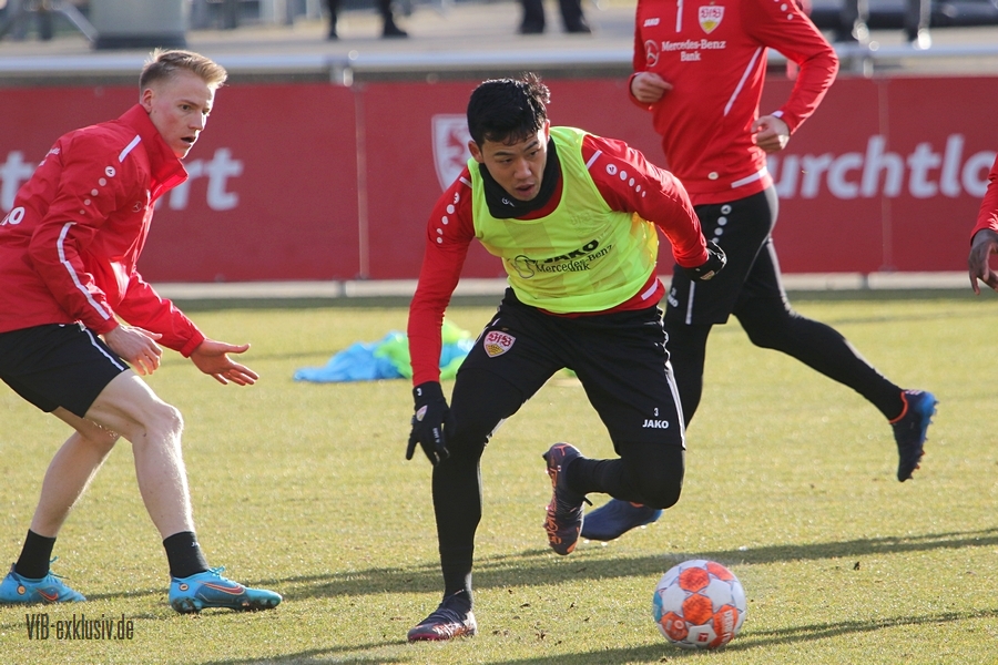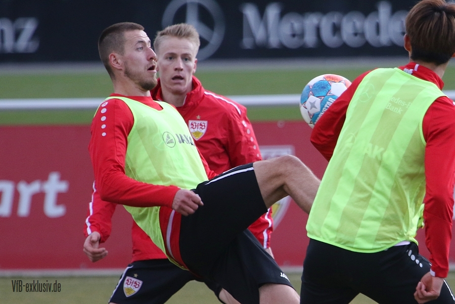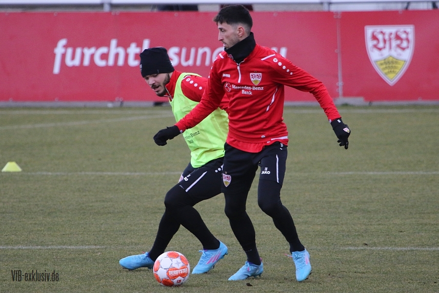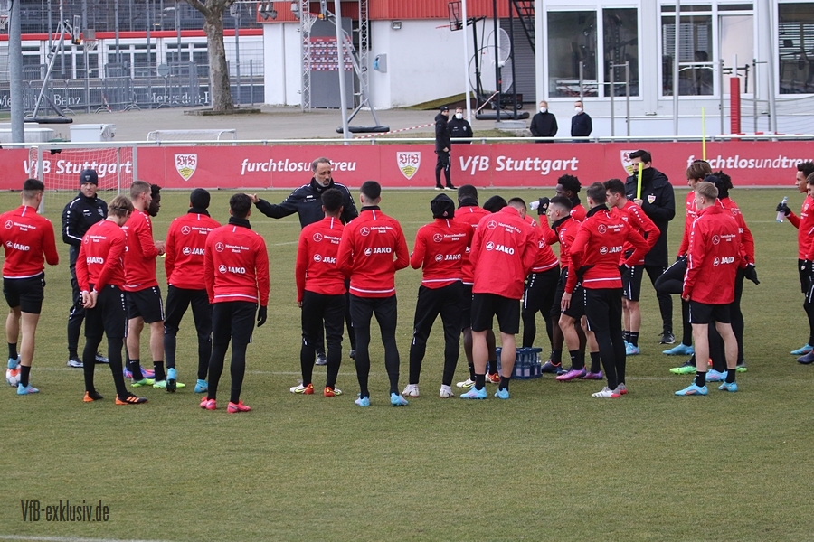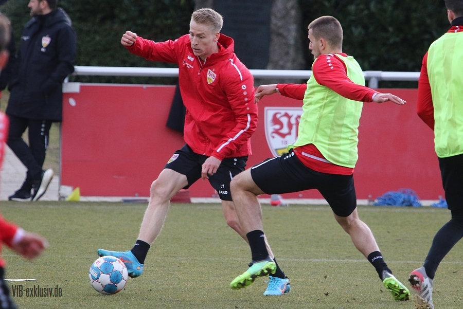 Zwei freie Tage waren für die Akteure des VfB drin, ehe es am Dienstag wieder auf den Rasen ging. Bochum wartet im Heimspiel am Samstag auf den VfB, die die Bayern regelrecht aus dem Stadion geschossen hatten. Als einer der ersten Spieler kam Waldemar Anton aus der Kabine. Er konnte nach seinem positiven Corona-Befund wieder mitwirken und war sofort über die volle Distanz in allen Übungen am Ball. Von Omar Marmoush, der sich ebenfalls das Coronavirus einfing, war noch nichts zu sehen. Für Sasa Kalajdzic reichte es mit seinen Wadenproblemen auch noch nicht fürs Mannschaftstraining, er absolvierte ein individuelles Training im Kraftraum. Tanguy Coulibaly und Daniel Didavi liefen nach dem gemeinsamen Warm-Up ihre Runden, vormutlich Trainingssteuerung. Der Rest des Teams teilte sich in zwei Gruppen auf die beiden Hälften des Trainingsplatzes auf. Es ging darum, mit einem langen Ball aus der Abwehrreihe über die Flügel oder durch die Mitte ins Angriffsspiel zu gelangen. Das Mittelfeld sollte dabei schnell überbrückt werden, um so zum Torabschluss zu kommen. Die Stürmer mussten sich gegen eine massive Abwehrreihe durchsetzen. Auch der nächste Gegner Bochum, wird vermutlich nicht unbedingt das Spiel machen wollen, sondern aus einer kompakten Defensive agieren.