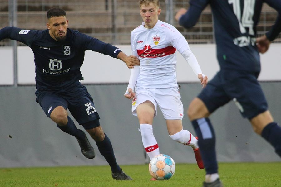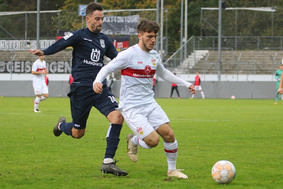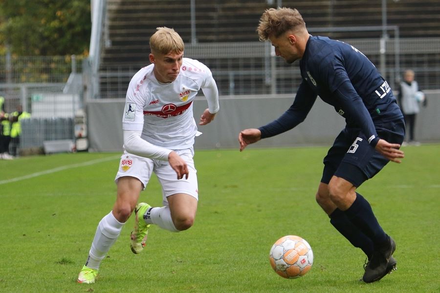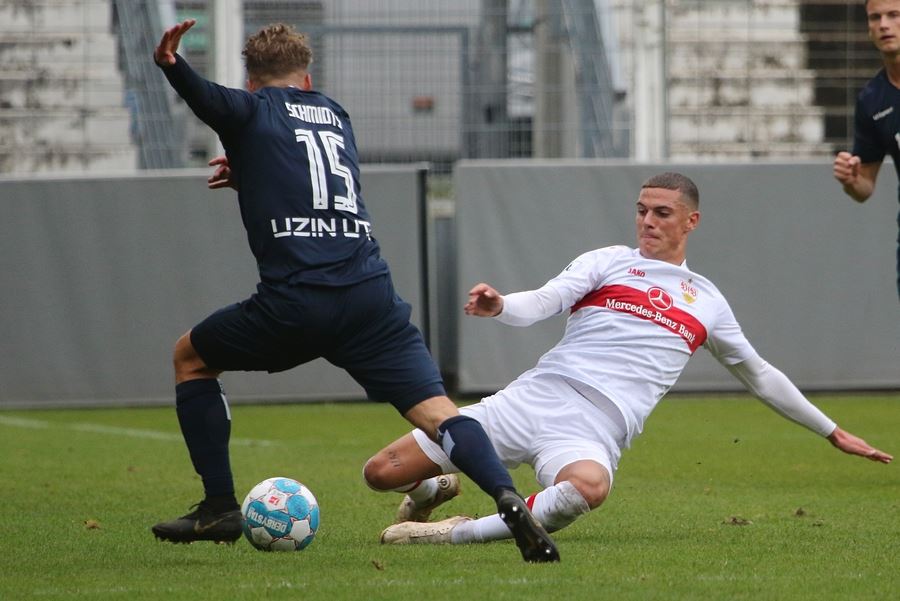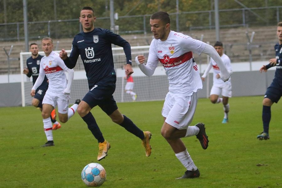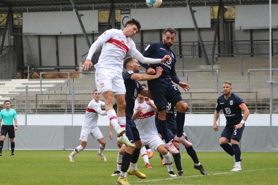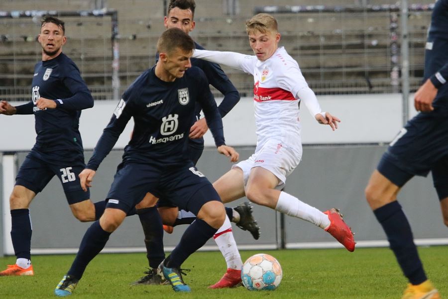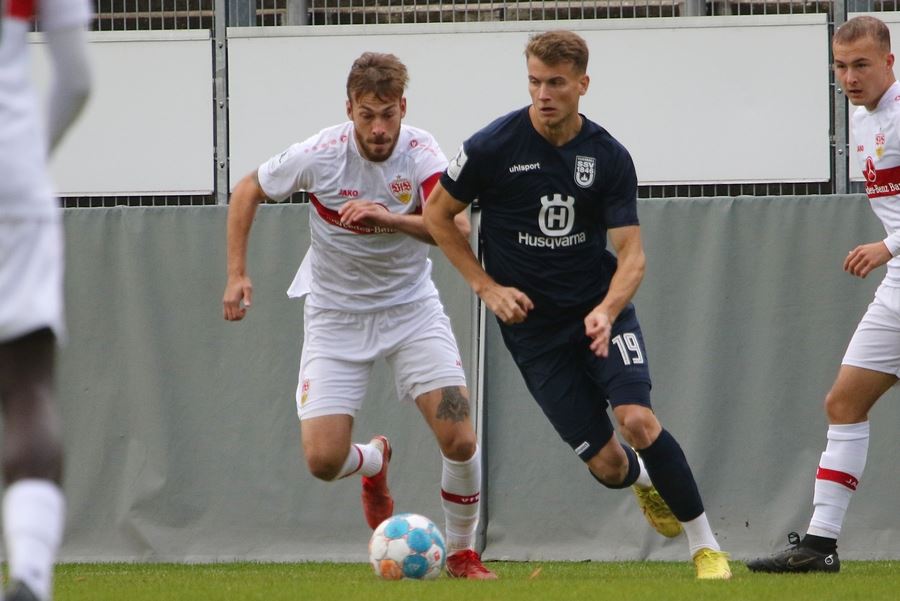 Auf die kleinen Schwaben kam im Gazi-Stadion auf der Waldau eine schwere Aufgabe zu. Gegen den Spitzenreiter aus Ulm stand das zweite Heimspiel in Folge an. Nach einer Negativserie konnte das Team von Frank Fahrenhorst am vergangenen Wochenende gegen Fulda gewinnen. Die Ulmer waren sofort im Spiel und machten Druck, um in Führung gehen. Die Gäste waren in der ersten Halbzeit spielbestimmend. Doch die Stuttgarter hielten die Null. Nach dem Seitenwechsel war die Dominanz des Tabellenführers ein wenig dahin. Auch der VfB traute sich unter den Augen des Geburtagskindes und Sportdirektors Sven Mislintat, im zweiten Durchgang mehr zu, spielte nach vorne und konnte die Ulmer ebenfalls in deren Defensive beschäftigen. Je länger das Spiel dauerte, lag die Priorität auf dem Halten des Remis. Ein Erfolg gegen das Topteam der Liga. So sah das auch Trainer Fahrenhorst nach dem Match. “Wir können sehr zufrieden sein mit der Art und Weise wie wir das Spiel bestritten haben. Ulm hatte von Anfang an eine hohe Aktivität und Intensität, damit haben sie uns am Anfang etwas den Schneid abgekauft. Aber ich kann der Mannschaft nur ein Kompliment machen, dass sie daran gewachsen ist und den Kampf angenommen hat. Von der Einstellung, vom Einsatz und vom Teamspirit hat man gespürt, dass die Jungs heute alles investiert haben. Mit dem Punkt kann ich gegen die beste Mannschaft der Liga gut leben. Die Jungs haben sich zwei freie Tage verdient, da sie viele Körner liegen gelassen haben.”