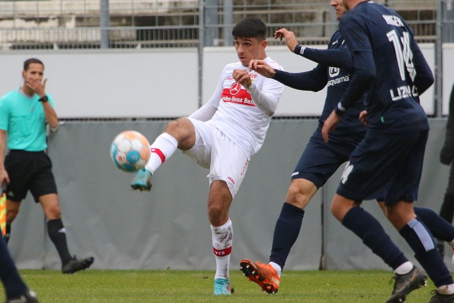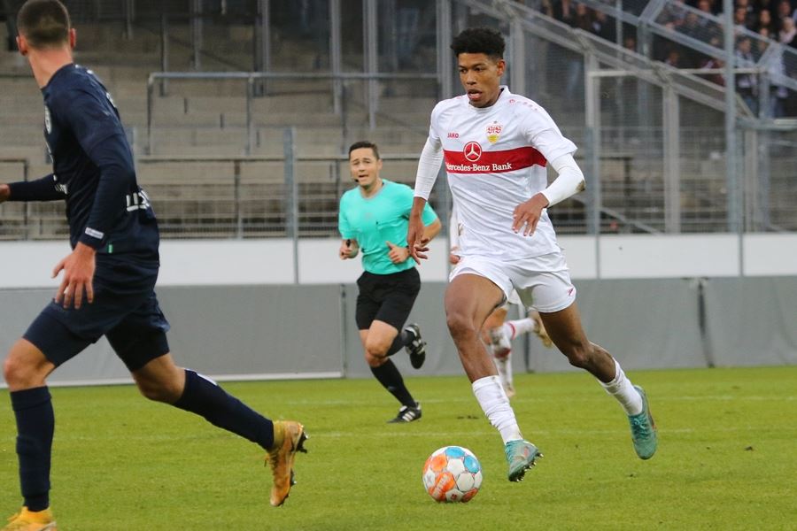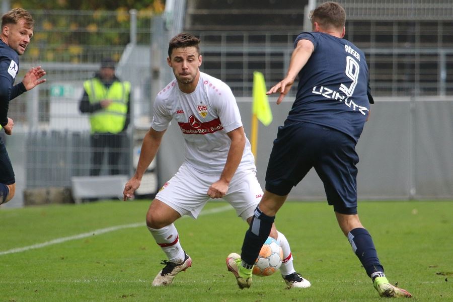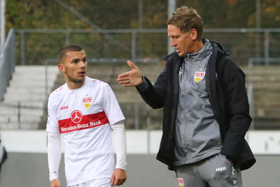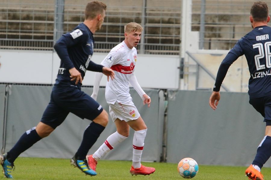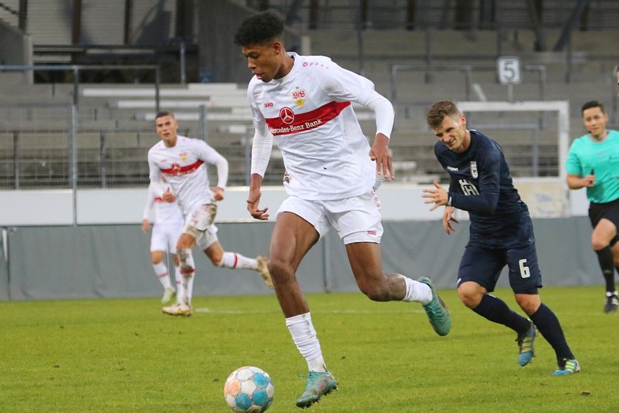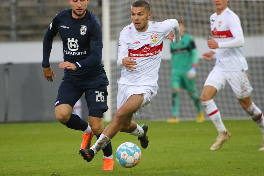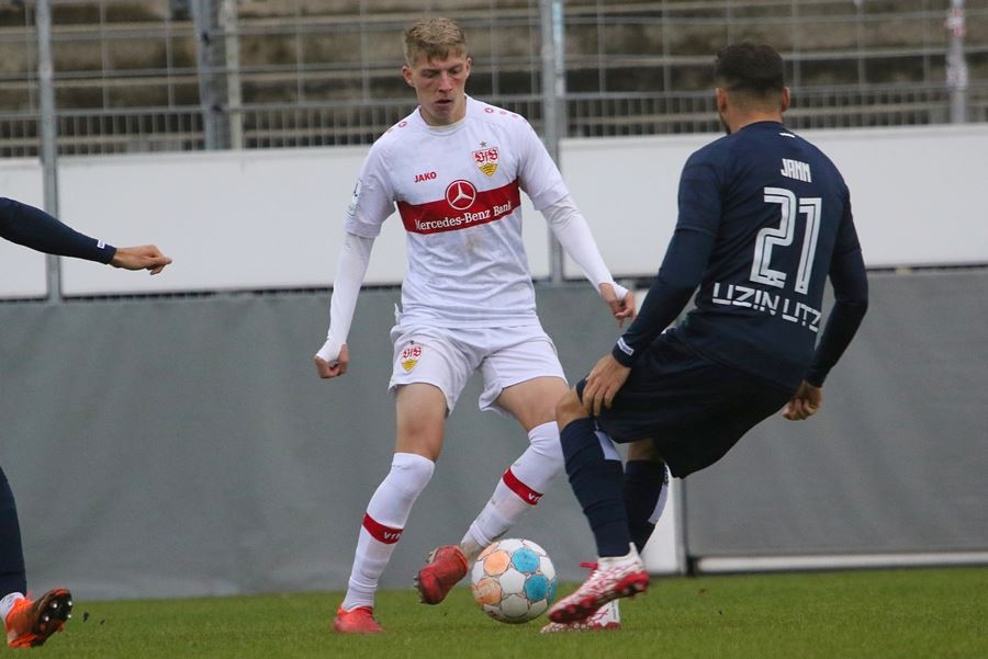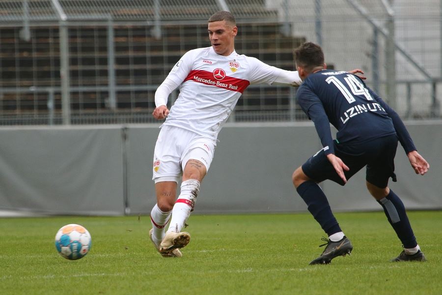 Auf die kleinen Schwaben kam im Gazi-Stadion auf der Waldau eine schwere Aufgabe zu. Gegen den Spitzenreiter aus Ulm stand das zweite Heimspiel in Folge an. Nach einer Negativserie konnte das Team von Frank Fahrenhorst am vergangenen Wochenende gegen Fulda gewinnen. Die Ulmer waren sofort im Spiel und machten Druck, um in Führung gehen. Die Gäste waren in der ersten Halbzeit spielbestimmend. Doch die Stuttgarter hielten die Null. Nach dem Seitenwechsel war die Dominanz des Tabellenführers ein wenig dahin. Auch der VfB traute sich unter den Augen des Geburtagskindes und Sportdirektors Sven Mislintat, im zweiten Durchgang mehr zu, spielte nach vorne und konnte die Ulmer ebenfalls in deren Defensive beschäftigen. Je länger das Spiel dauerte, lag die Priorität auf dem Halten des Remis. Ein Erfolg gegen das Topteam der Liga. So sah das auch Trainer Fahrenhorst nach dem Match. “Wir können sehr zufrieden sein mit der Art und Weise wie wir das Spiel bestritten haben. Ulm hatte von Anfang an eine hohe Aktivität und Intensität, damit haben sie uns am Anfang etwas den Schneid abgekauft. Aber ich kann der Mannschaft nur ein Kompliment machen, dass sie daran gewachsen ist und den Kampf angenommen hat. Von der Einstellung, vom Einsatz und vom Teamspirit hat man gespürt, dass die Jungs heute alles investiert haben. Mit dem Punkt kann ich gegen die beste Mannschaft der Liga gut leben. Die Jungs haben sich zwei freie Tage verdient, da sie viele Körner liegen gelassen haben.”