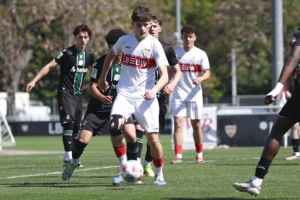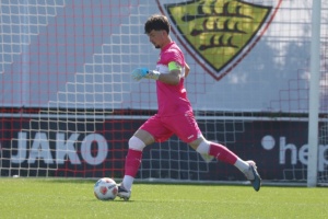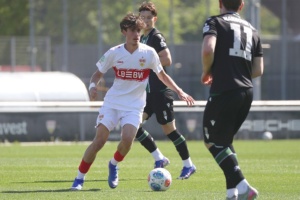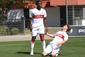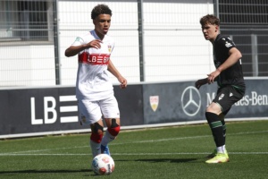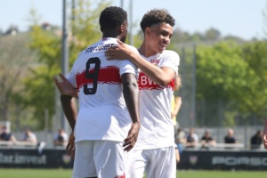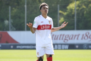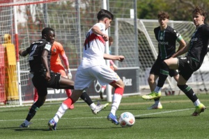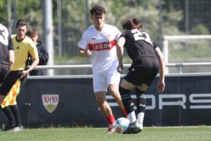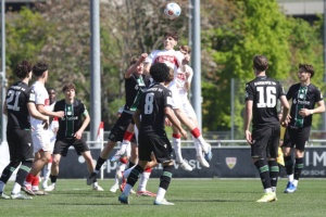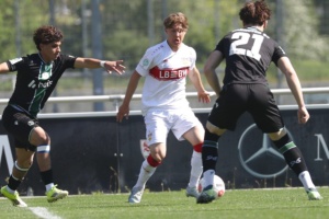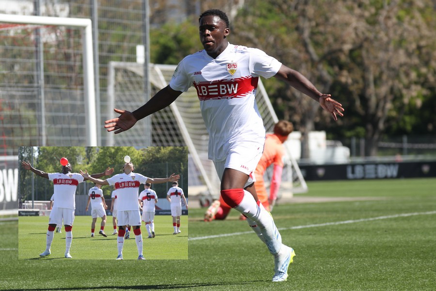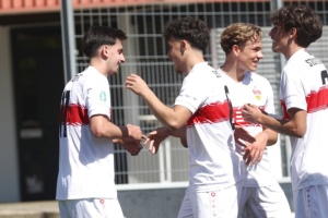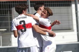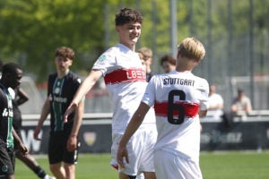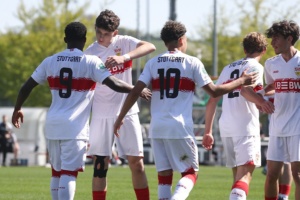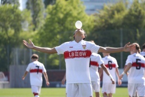Der VfB hat die Hauptrunde bei den B-Junioren dominiert und traf im Achtelfinale auf Hannover 96. Auch in diesem K.O.-Spiel war schnell klar, war das Match gewinnen wird. Beim 1:0 wurde die Flanke zum Torschuss, doch der Jubel danach erinnerte sehr an einen ehemaligen Bundesligastar namens Nkunku, der oft mit einem roten Luftballon seine Tore feierte. Malik Mosrati hatte einen weißen, der Torschütze Idriss Kenmoe zum späteren 2:0 einen roten Ballon im Mund. Die weiß-rote Dominanz ging weiter. Zur Pause stand es bereits 4:0. Direkt nach Wiederbeginn steuerte Hannover einen VfB-Treffer selbst bei, ehe Stuttgart noch vier Tore nachlegte. Die 96er waren in allen Bereichen überfordert, der VfB machte da weiter, wo sie in der Ligaphase aufgehört hatten. Im Viertelfinale wartet der Sieger aus der Partie Karlsruhe gegen Hertha.