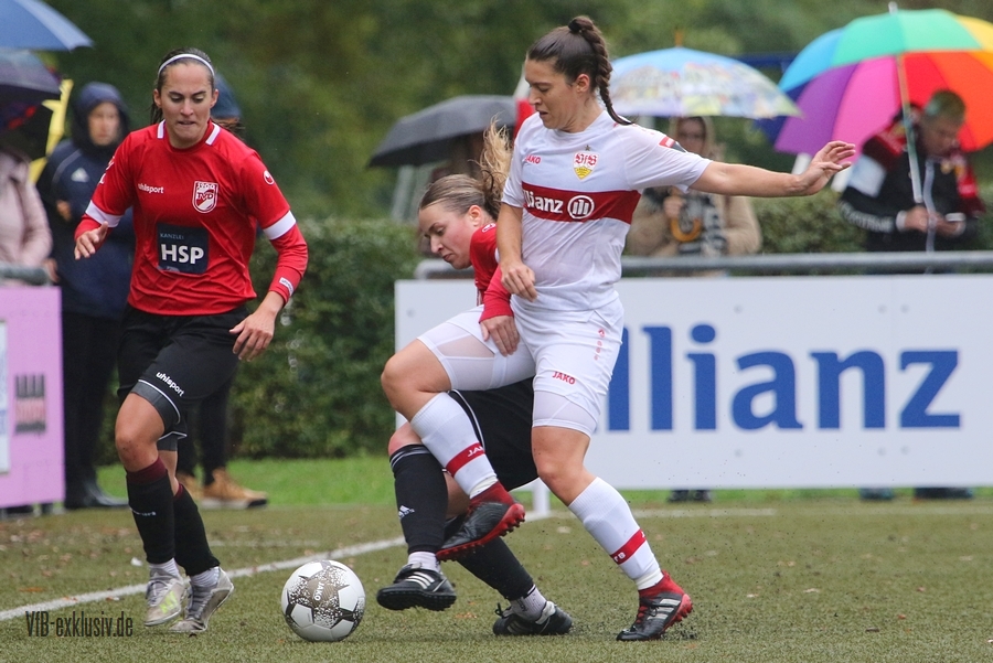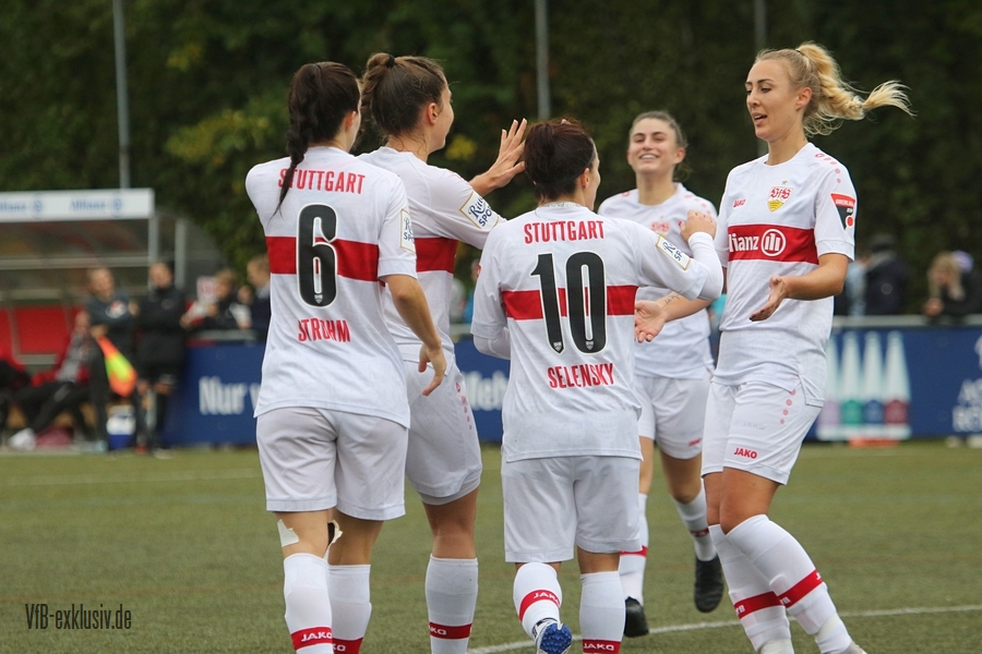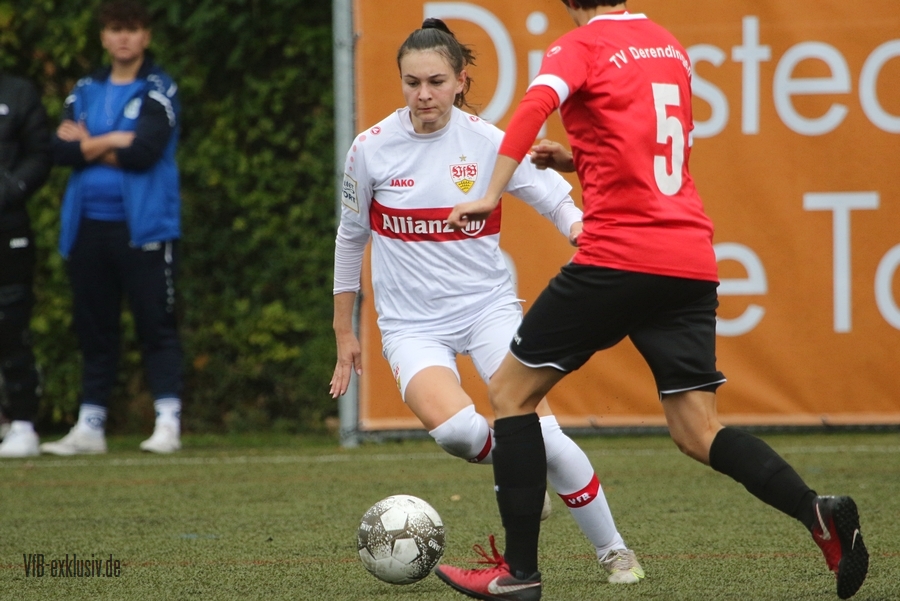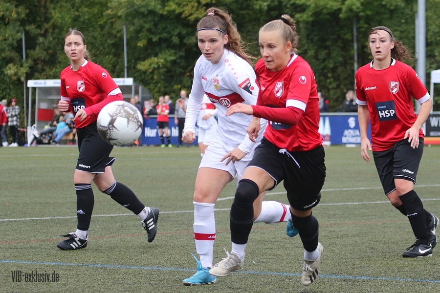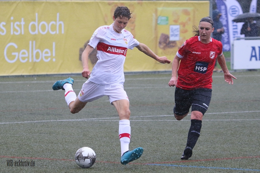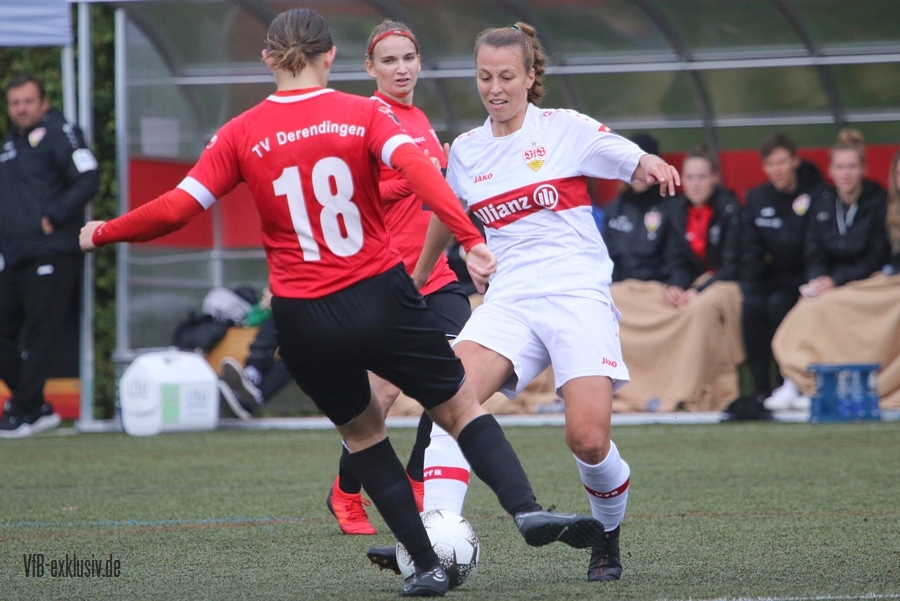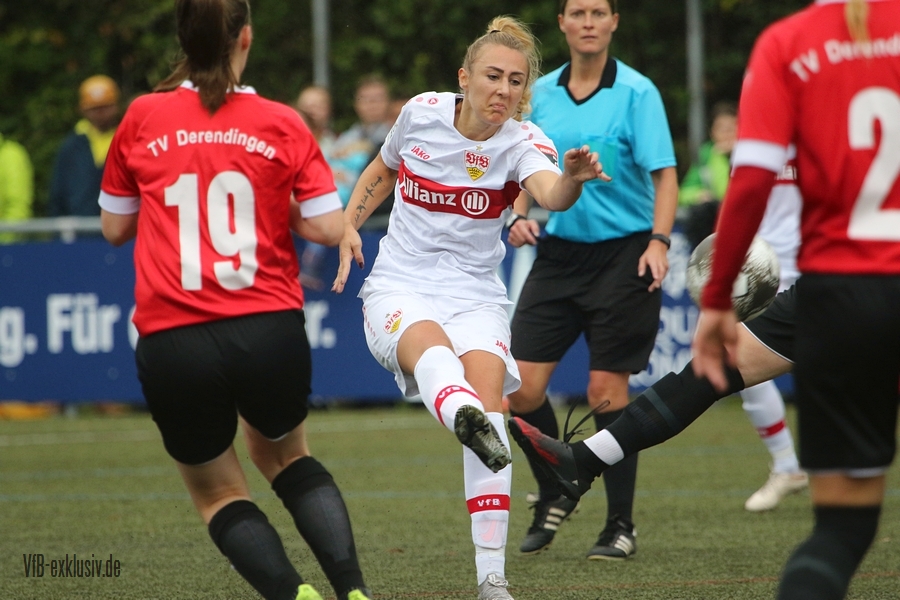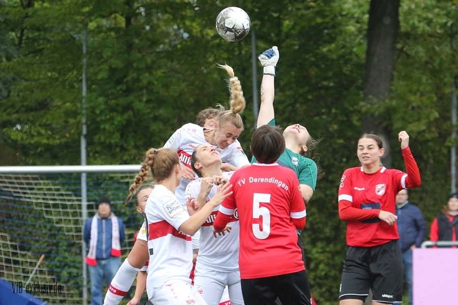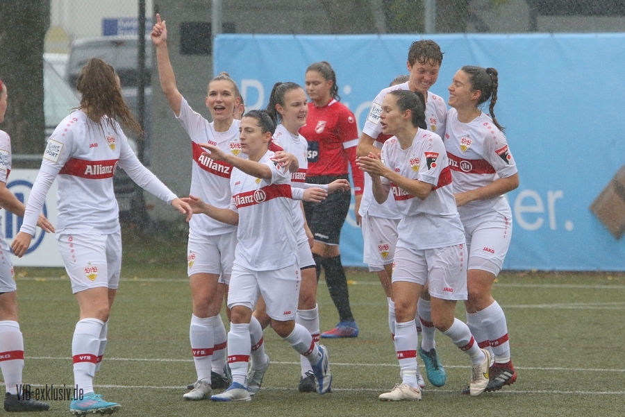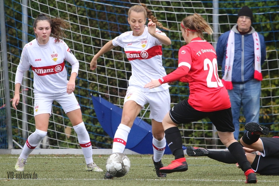 Die bislang makellose Bilanz wurde beim letzten Auswärtsspiel in Freiburg beschädigt. Die VfB-Mädels mussten ihre erste Niederlage hinnehmen. Das wollten sie am Sonntagnachmittag gegen den TV Derendingen wieder geraderücken. Pünktlich zum Anpfiff des Spiels, fing es an aus Eimern zu regnen. Das Spiel auf dem Kunstrasen in Obertürkheim litt allerdings nicht darunter. Der VfB war von Beginn an das bessere Team. Mit einem frühen Tor nach elf Minuten ging Stuttgart in Führung. Teresa Böpple bekam noch den Fuss an den Ball, nachdem es ein wenig Verwirrung um die Torschützin gab. Kurz vor der Pause ein bitterer Moment. Nadine Gairing musste das Spielfeld angeschlagen verlassen. Wie schwer die Verletzung ist, muss sich noch herausstellen. Nach dem Seitenwechsel, das gleiche Bild. Der VfB blieb das bessere Team und bekam immer mehr Spielkontrolle. Böpple zog in der 54. Minute ab zum 2:0. Nach einer guten Stunde, war es die eingewechselte Svea Fleischmann, die eine Flanke auf den Kopf von Böpple hereingeben konnte. Es war das dritte Tor der Stuttgarterinnen und das dritte Tor durch Teresa Böpple. Eine kurz Ecke, konnte Anja Selensky mit einem satten Schuss zum 4:0 Endstand veredeln. Der VfB ist nach dem 2:4 Ausrutscher wieder in der Spur. Am kommenden Wochenende müssen die Frauen zum punktlosen Tabellenletzten Löchgau, ehe das Spitzenspiel gegen den Tabellenführer Neuenstein ansteht.