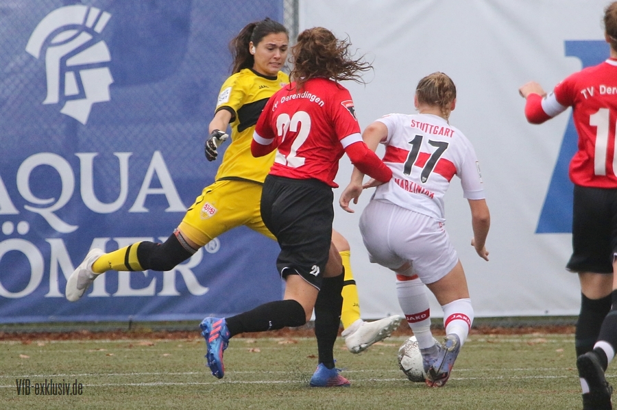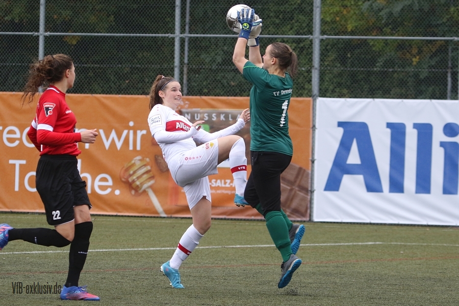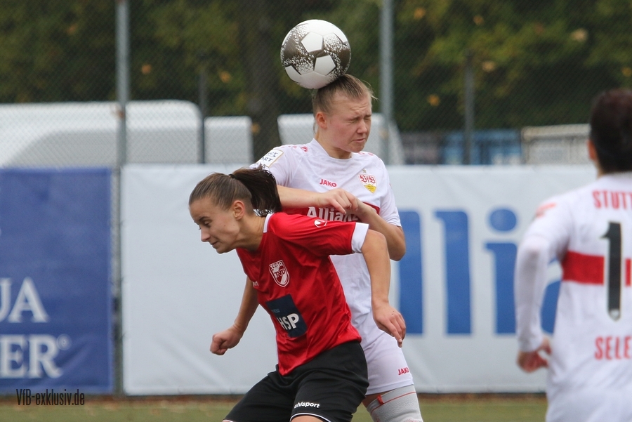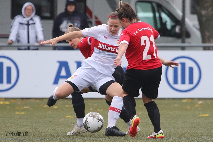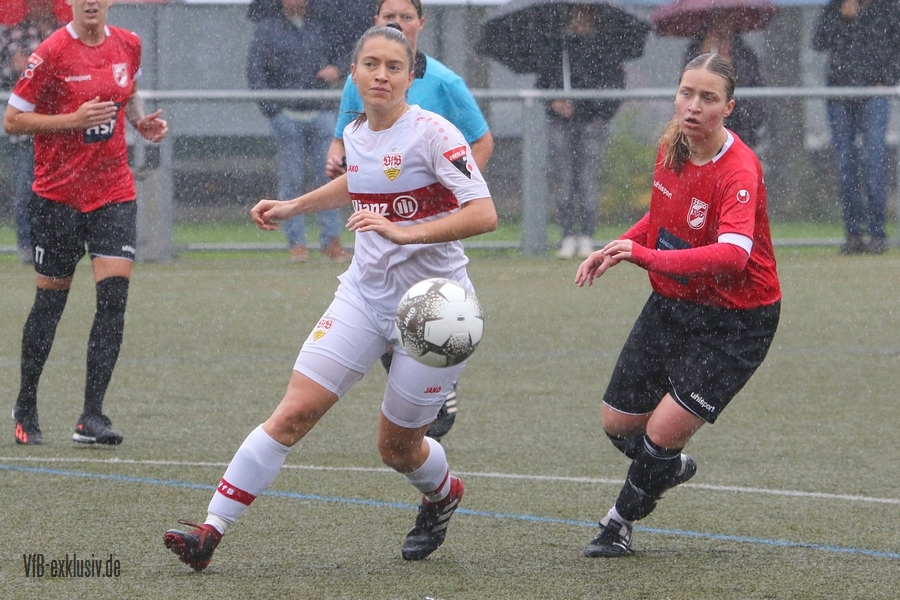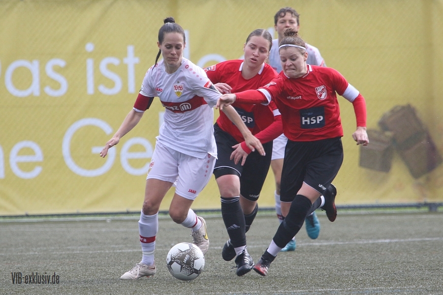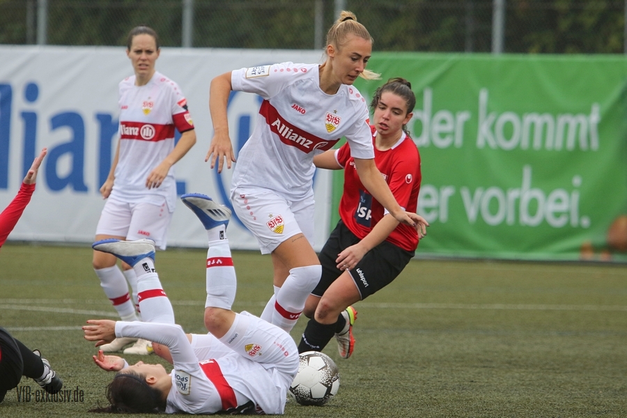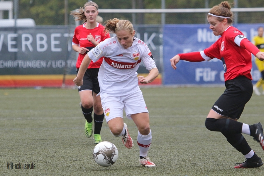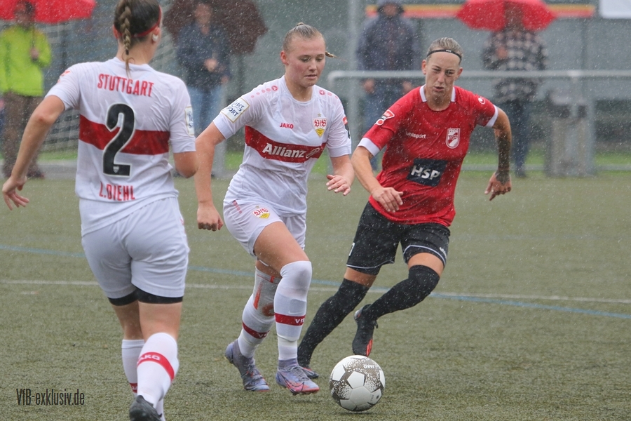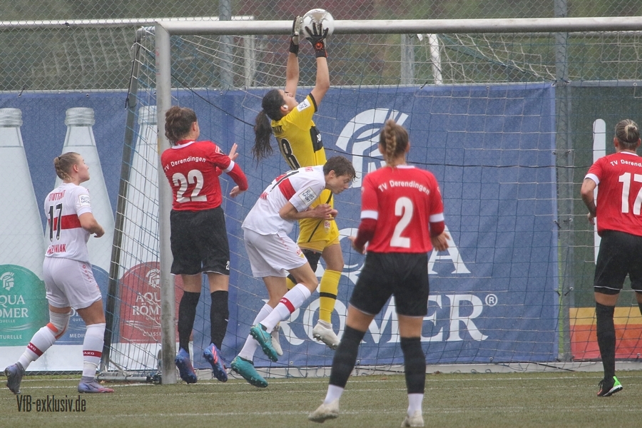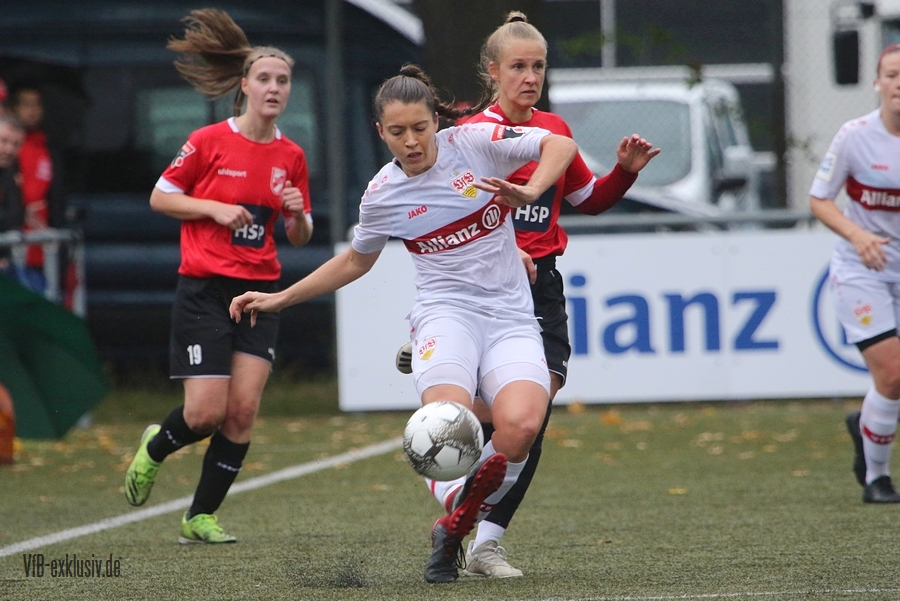 Die bislang makellose Bilanz wurde beim letzten Auswärtsspiel in Freiburg beschädigt. Die VfB-Mädels mussten ihre erste Niederlage hinnehmen. Das wollten sie am Sonntagnachmittag gegen den TV Derendingen wieder geraderücken. Pünktlich zum Anpfiff des Spiels, fing es an aus Eimern zu regnen. Das Spiel auf dem Kunstrasen in Obertürkheim litt allerdings nicht darunter. Der VfB war von Beginn an das bessere Team. Mit einem frühen Tor nach elf Minuten ging Stuttgart in Führung. Teresa Böpple bekam noch den Fuss an den Ball, nachdem es ein wenig Verwirrung um die Torschützin gab. Kurz vor der Pause ein bitterer Moment. Nadine Gairing musste das Spielfeld angeschlagen verlassen. Wie schwer die Verletzung ist, muss sich noch herausstellen. Nach dem Seitenwechsel, das gleiche Bild. Der VfB blieb das bessere Team und bekam immer mehr Spielkontrolle. Böpple zog in der 54. Minute ab zum 2:0. Nach einer guten Stunde, war es die eingewechselte Svea Fleischmann, die eine Flanke auf den Kopf von Böpple hereingeben konnte. Es war das dritte Tor der Stuttgarterinnen und das dritte Tor durch Teresa Böpple. Eine kurz Ecke, konnte Anja Selensky mit einem satten Schuss zum 4:0 Endstand veredeln. Der VfB ist nach dem 2:4 Ausrutscher wieder in der Spur. Am kommenden Wochenende müssen die Frauen zum punktlosen Tabellenletzten Löchgau, ehe das Spitzenspiel gegen den Tabellenführer Neuenstein ansteht.