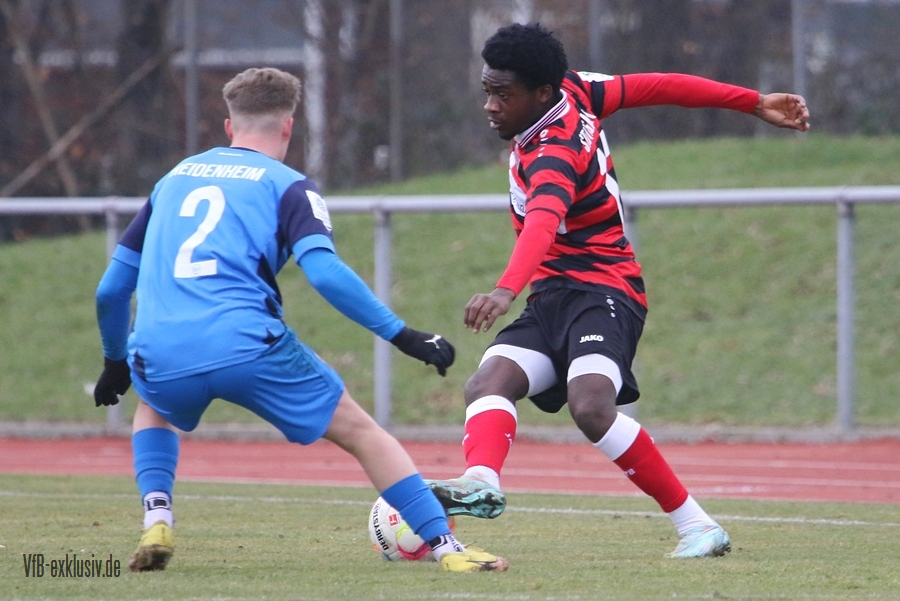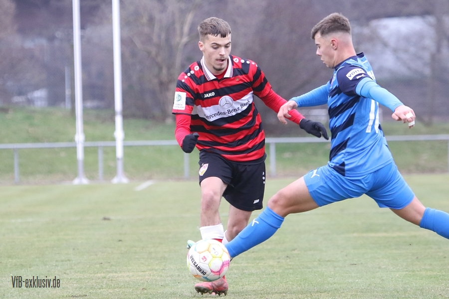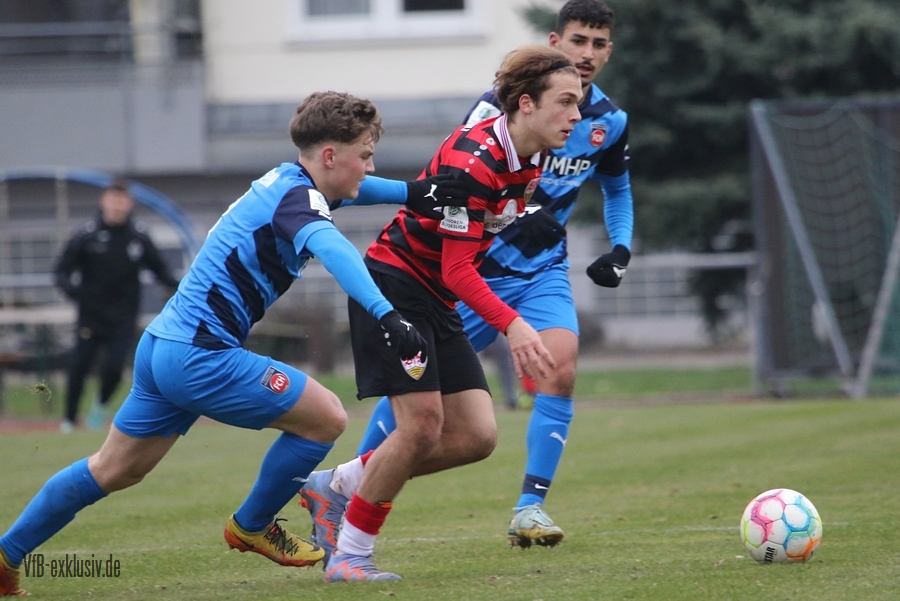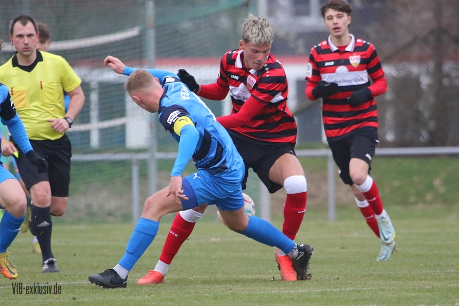 Unterschiedlicher hätte es am Samstagnachmittag nicht laufen können für die Akademiemannschaften des VfB. Die U17 wird erst Ende Februar den Ligabetrieb wieder aufnehmen. Somit war das Spiel gegen Regensburg der Auftakt ins neue Jahr. Mit einem satten 10:0 starteten die Jungs von Markus Fiedler ins Jahr 2023 und konnten so einen Auftakt nach Maß feiern. Nicht ganz gelungen ist die Generalprobe für die U19. Am kommenden Samstag geht es in den Rest der Saison gegen Hoffenheim. Beim letzten Test gegen Heidenheim, musste sich das Willig-Team mit 1:2 geschlagen geben. Alle Tore fielen im ersten Durchgang. Heidenheim ging früh in Führung und konnte nachlegen. Für den VfB traf Samuele Di Benedetto. Ein zweiter Treffer und damit zumindest ein Remis wollte nicht mehr gelingen. Auch die U21 testete. Be der zweiten Mannschaft von Augsburg ging man nach einer 2:0-Führung am Ende 2:5 baden.