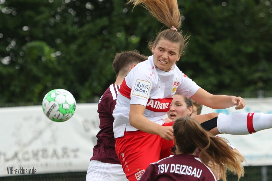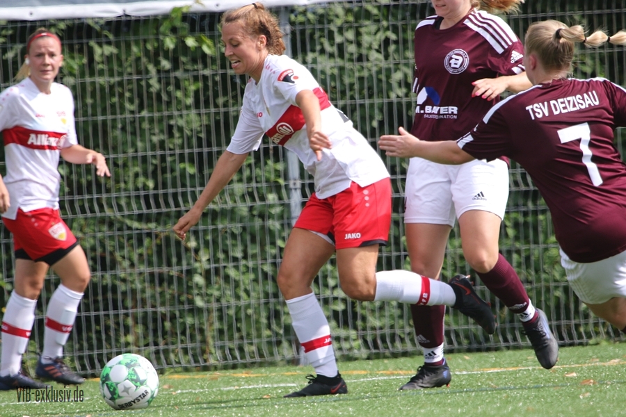 Sie waren die Favoritinnen und wurden ihrer Rolle auch gerecht. In der zweiten Runde des wfv-Pokals traf das Team von Heiko Gerber auf den TSV Deizisau. Die Spielanteile waren klar verteilt, es spielte nur der VfB. Das einzige Manko der VfB-Mädels war die Präzision im Spielaufbau und das schnellere Direktspiel. Doch mit dem frühen 1:0 von Kira Artmann, waren die Segel schnell in Richtung Sieg gesetzt. Per direktem Freistoß traf Anja Selensky wenig später zum 2:0. Von den Gastgebern kam sehr wenig, Torfrau Besarta Leci hatte einen ruhigen Vormittag. Nach dem Seitenwechsel war es erneut Kira Artmann, die einen Fehler der Torhüterin nutzte und zum 3:0 einschob. Die eingewechselte Teresa Böpple machte mit dem vierten Stuttgarter Treffer den Deckel drauf. Insgesamt eine runde Vorstellung und zugleich die letzte Generalprobe vor dem Ligaauftakt am kommenden Sonntag daheim gegen Crailsheim.