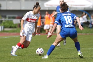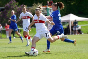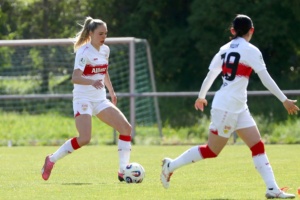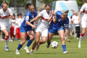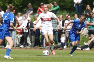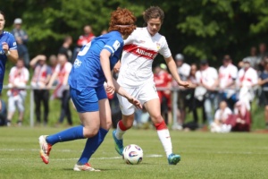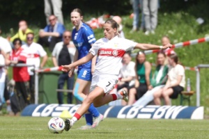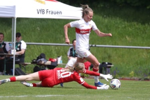 Das Topspiel gegen Meppen stand noch vor dem Bundesligaspiel der Herren gegen Bremen an. Gewinnt das Team von Nico Schneck, ist Meppen so gut wie aus dem Rennen. Das Spiel selbst war eher nüchtern und zäh, doch Nici Billa konnte die Schwaben früh in Führung schießen. Kiara Beck im Tor konnte sich das ein oder andere Mal auszeichnen und hielt den VfB im Spiel. Zehn Minuten nach Wiederbeginn war es Maxi Rall, die das Spiel zugunsten des VfB entschieden hatte. Das Spiel selbst bleib auf eher mäßigem Niveau, Stuttgart wurde zwar aktiver, konnte sich aber oft nicht durchsetzen, so dass es wenig Torraumszenen gab. Am Ende reichten die beiden Tore, um einen wichtigen Sieg einzufahren und dem Aufstieg wieder einen sehr großen Schritt näher zu kommen