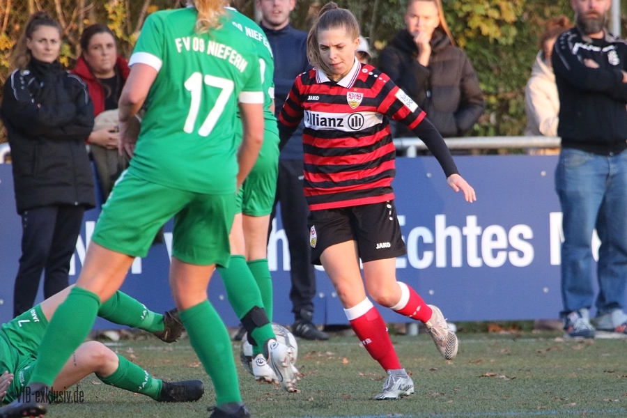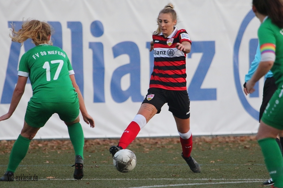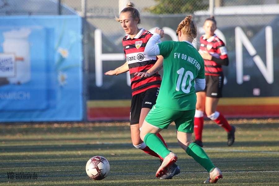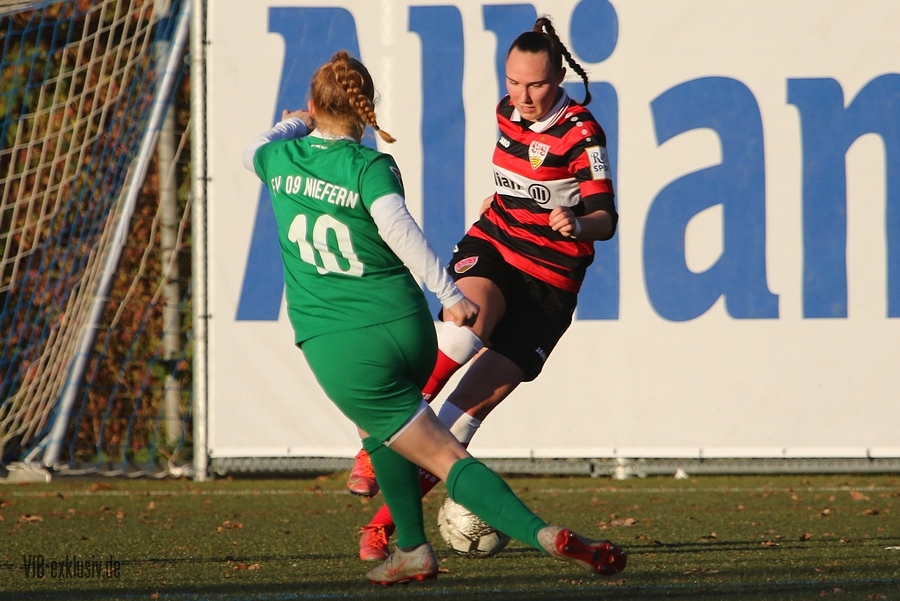 Die Frauen des VfB gingen zum ersten Mal als Tabellenführer in ein Ligaspiel. Gegen Niefern sollte diese weiter ausgebaut werden. Doch der VfB kam schwer ins Spiel. Niefern setzte ordentlich nach und die Stuttgarter Mädels immer wieder unter Druck. Ein Kombinationsspiel war so schwer möglich. Nach einer guten halben Stunde wurde Katrin Bubeck im Strafraum gefoult. Die Schiedsrichterin sah das Foul auf der anderen Seite und gab Freistoß für Niefern. Wenig später hatte Celine Philipp die Chance zur Führung. Auch in die zweiten Halbzeit, ein ähnliches Bild, die ganz großen Chancen fehlten. Selbst als die Gäste die Schlussviertelstunde nach einer Gelb-Roten Karte nur noch zu Zehnt spielen mussten, konnte der VfB dies nicht nutzen. Stuttgart warf zwar nochmals einiges nach vorn, die beste Chance im zweiten Durchgang hatte Sophie Gairing per Kopf, doch auch der Ball wollte nicht über die Linie. Es blieb beim torlosen Remis. Konkurrent Neuenstein gewann und überholt den VfB in der Tabelle wieder. Ein Punkt trennt die beiden Teams.