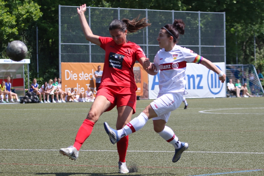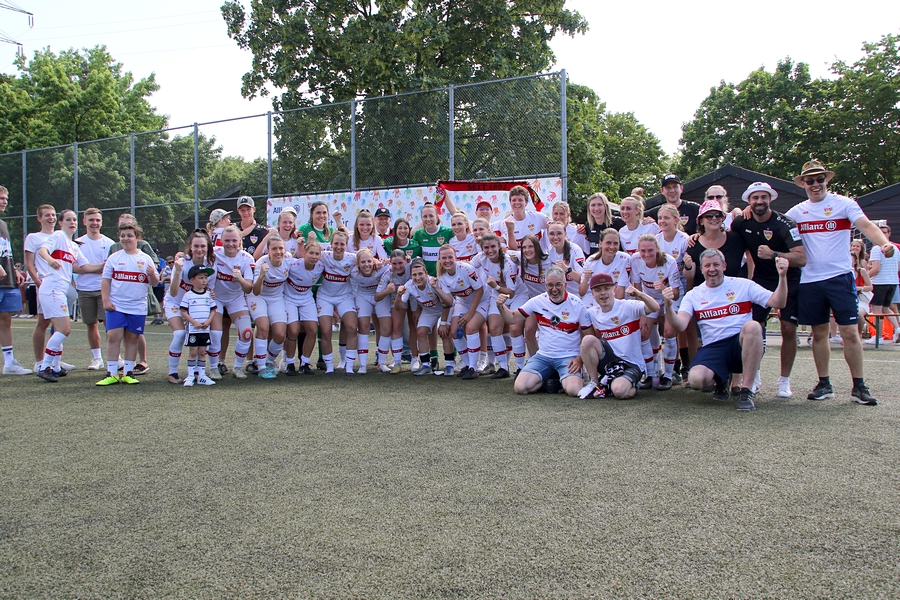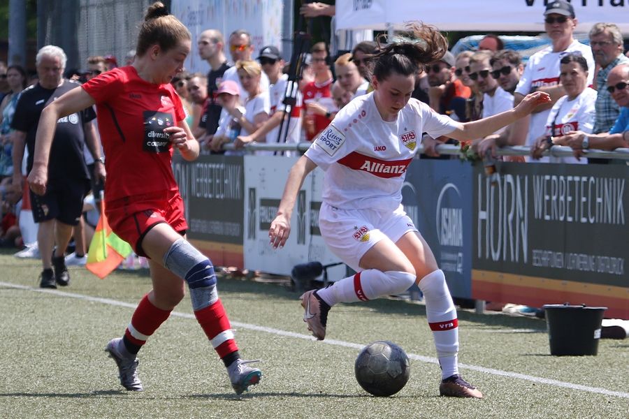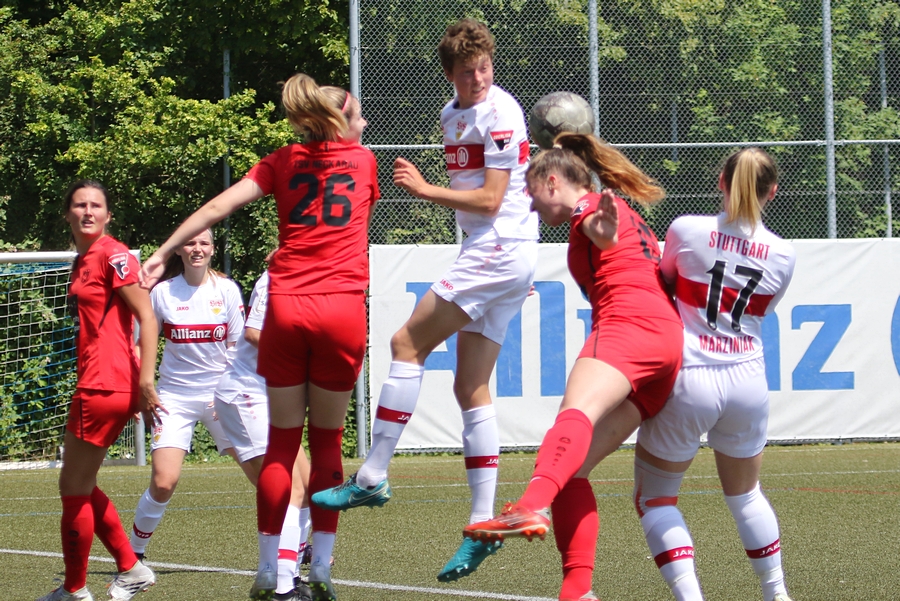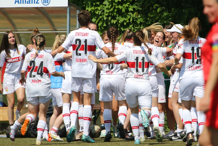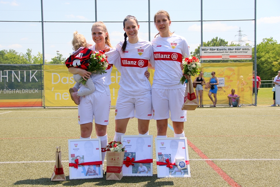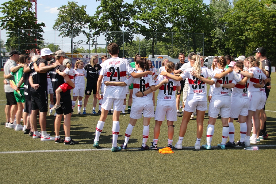 Den Aufstieg, das Ziel der Schwaben von der Oberliga in die Regionalliga, mussten die Frauen des VfB schon vor ein paar Wochen abschreiben, doch in den letzten Spielen konnten sie sich nochmals von ihrer Siegesseite zeigen. Auch im letzten Saisonspiel gegen Neckarau wollten sie einen guten Abschluss und den erarbeiteten sie sich. Während Celine Philipp und Anja Selensky mit den besten Chancen noch scheiterten, klappte es im zweiten Durchgang besser. Die Kapitänin Anja Selensky brachte den VfB in Führung, Sophie Gairing konnte durch ein Abstaubertor auf 2:0 erhöhen. So blieb es bis zum Ende. Neckarau hatte kaum Torchancen, hielten allerdings in der Abwehr gut dagegen. Der VfB schließt damit die Runde als Vizemeister ab. Vor und nach dem Match gab es viele Emotionen. So verabschiedete der Verein einige Spielerinnen in die zweite Mannschaft, die in der Relegation noch um den Aufstieg spielt, aber auch ins Karriereende. Vor dem Spiel wurden sie entsprechend verabschiedet. Nach dem Spiel stand die komplette Mannschaft im Kreis. Trainer Heiko Gerber gab seinem Team noch Worte mit, auch VfB-Präsident Claus Vogt war dabei. Im Anschluss sangen die Mädels zum Titel “My Heart will go on” weiter im Kreis, ehe sie sich von den Fans mit einem gemeinsamen Bild und einer Ehrenrunde bedankten und verabschiedeten.