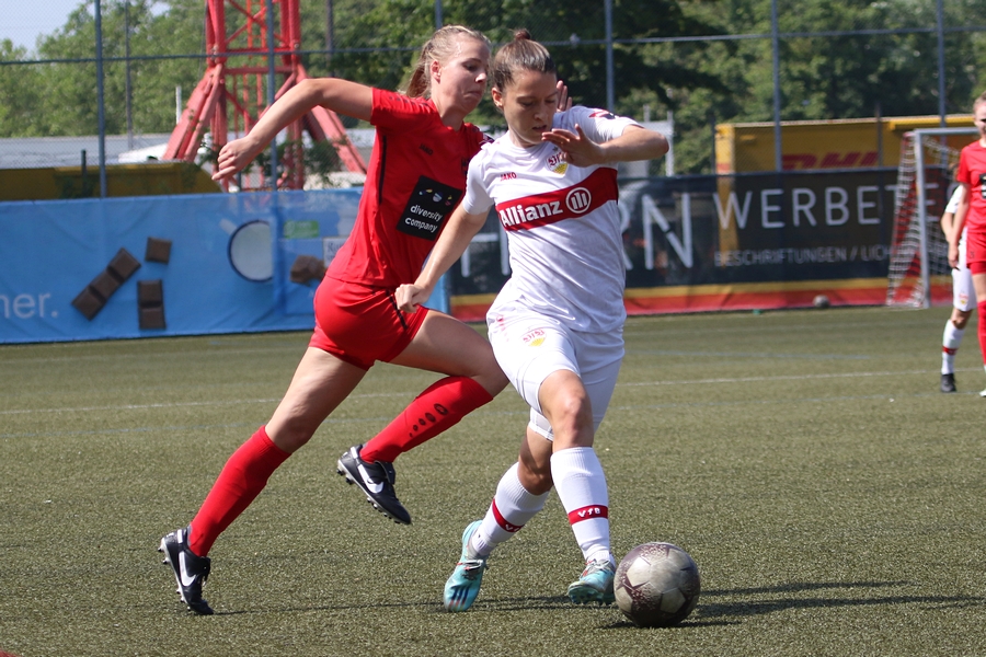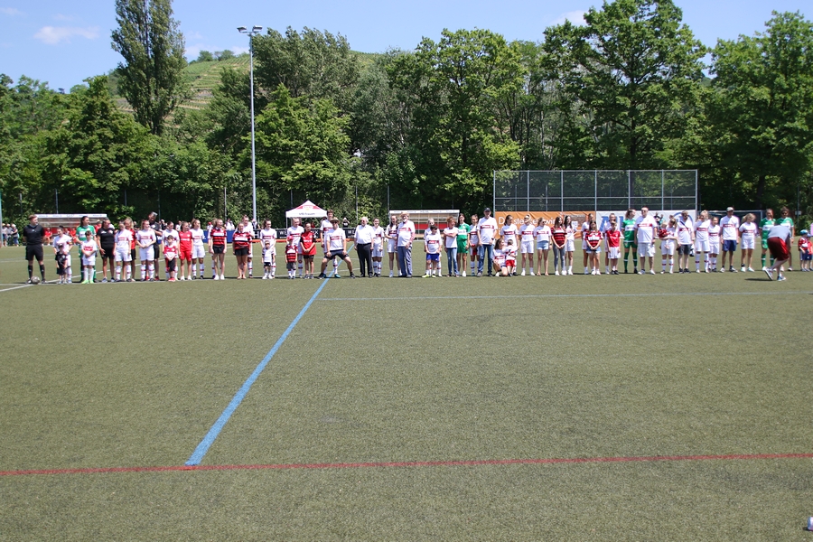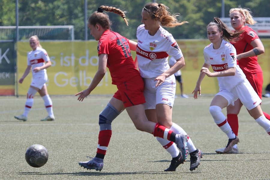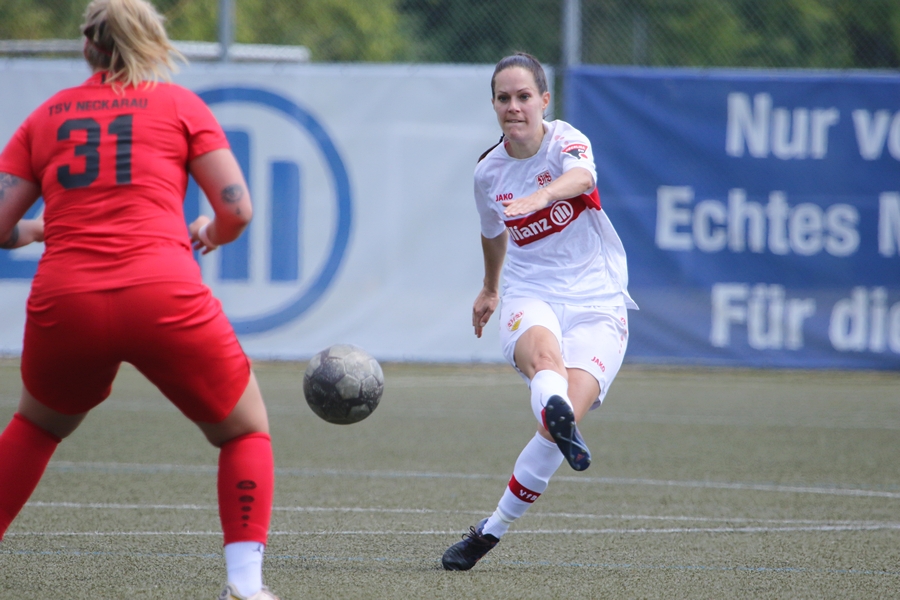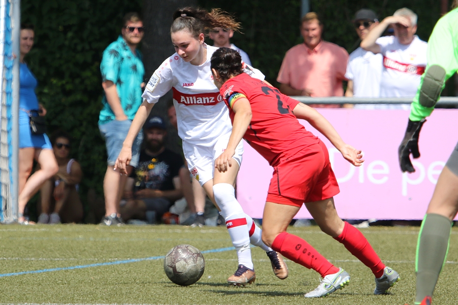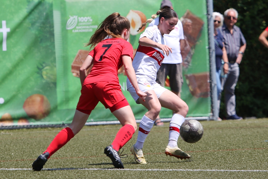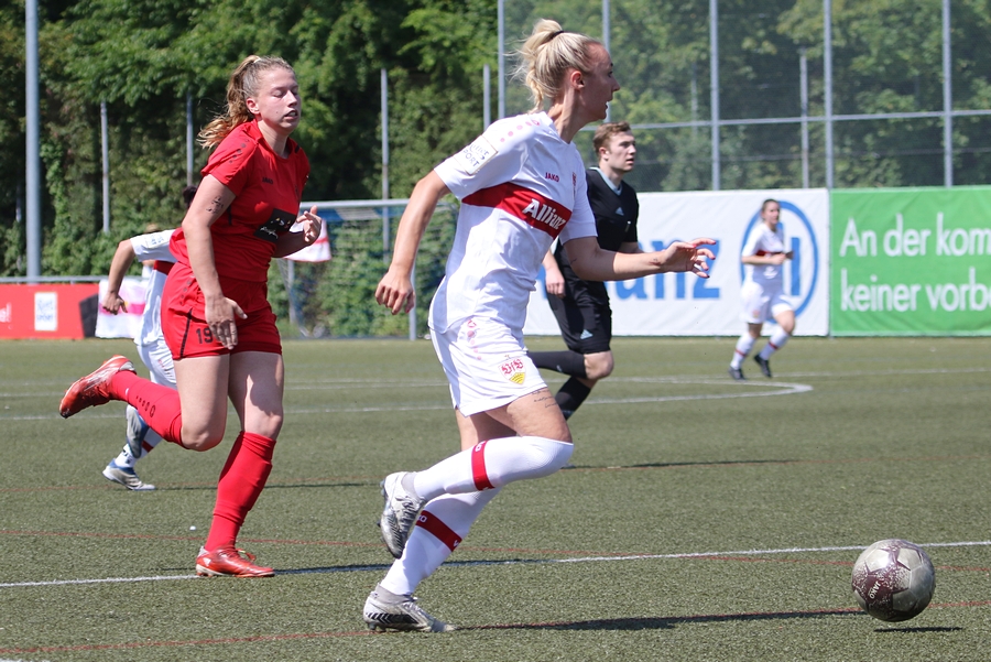 Den Aufstieg, das Ziel der Schwaben von der Oberliga in die Regionalliga, mussten die Frauen des VfB schon vor ein paar Wochen abschreiben, doch in den letzten Spielen konnten sie sich nochmals von ihrer Siegesseite zeigen. Auch im letzten Saisonspiel gegen Neckarau wollten sie einen guten Abschluss und den erarbeiteten sie sich. Während Celine Philipp und Anja Selensky mit den besten Chancen noch scheiterten, klappte es im zweiten Durchgang besser. Die Kapitänin Anja Selensky brachte den VfB in Führung, Sophie Gairing konnte durch ein Abstaubertor auf 2:0 erhöhen. So blieb es bis zum Ende. Neckarau hatte kaum Torchancen, hielten allerdings in der Abwehr gut dagegen. Der VfB schließt damit die Runde als Vizemeister ab. Vor und nach dem Match gab es viele Emotionen. So verabschiedete der Verein einige Spielerinnen in die zweite Mannschaft, die in der Relegation noch um den Aufstieg spielt, aber auch ins Karriereende. Vor dem Spiel wurden sie entsprechend verabschiedet. Nach dem Spiel stand die komplette Mannschaft im Kreis. Trainer Heiko Gerber gab seinem Team noch Worte mit, auch VfB-Präsident Claus Vogt war dabei. Im Anschluss sangen die Mädels zum Titel “My Heart will go on” weiter im Kreis, ehe sie sich von den Fans mit einem gemeinsamen Bild und einer Ehrenrunde bedankten und verabschiedeten.