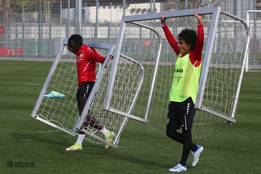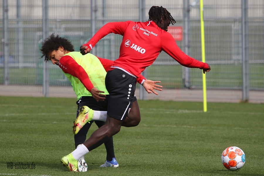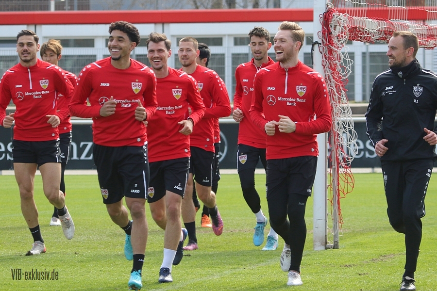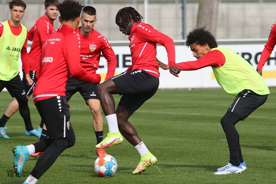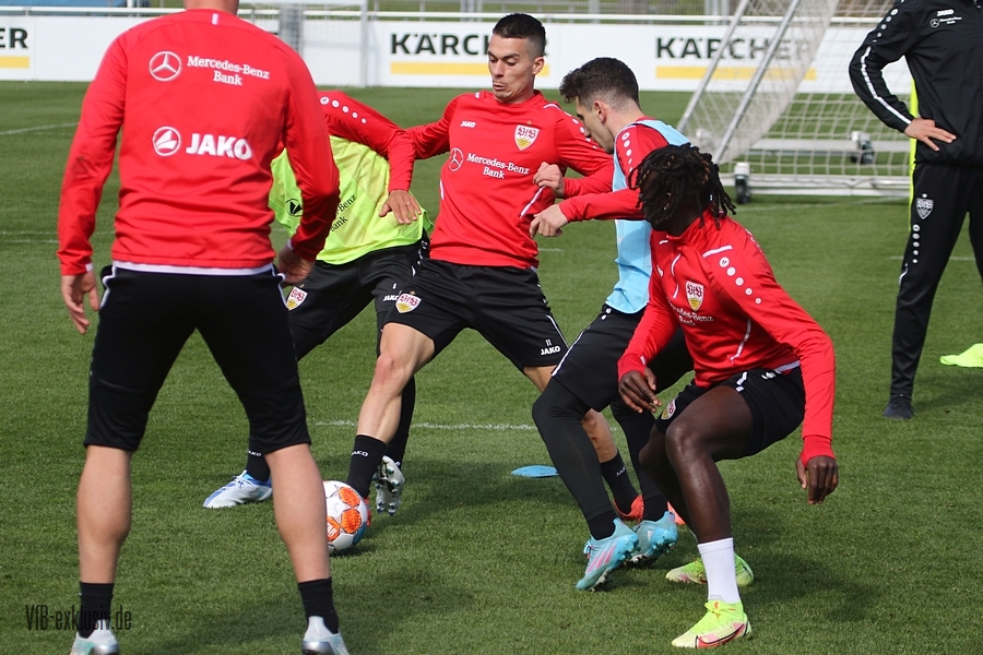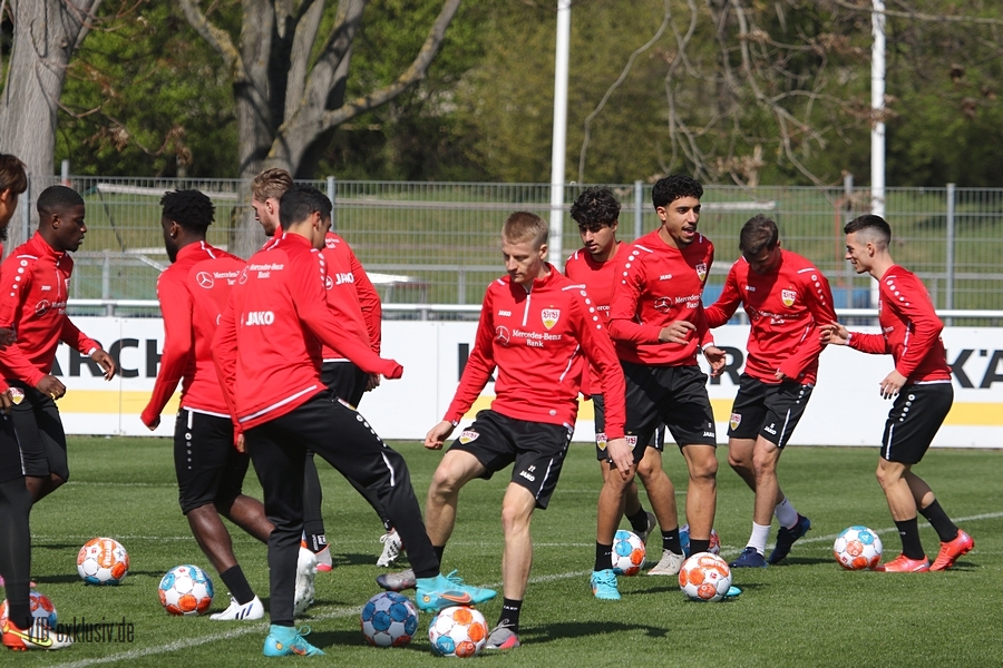 Der VfB startete geteilt in die Trainingswoche am Montagnachmittag. Das Aufwärmprogramm machten alle Spieler mit, die auf dem Rasen waren. Sasa Kalajdzic trainiert indoor individuell, Borna Sosa fehlte ebenfalls noch im Kreis des Teams. Auch Mo Sankoh war nicht auf dem Platz. Während die Startelf vom Samstag im Anschluss ihre Runden um das Trainingsgelände drehte, trainierten die Spieler, die zuletzt nicht so häufig zum Einsatz kamen in der Spielform. Mit dabei und die komplette Einheit am Ball, waren Lilian Egloff und Philipp Förster, die aus unterschiedlichen Gründen (Rückenprobleme und Coronainfektion) zuletzt nicht im Kader standen. Für Egloff wird es erneut ein Aufbau über die U21 werden, für Förster könnte es womöglich wieder in den Kader am Freitag gegen den BVB reichen. Auch Mangala, Coulibaly, Massimo, Tibidi und vor allem Thommy, der nach dem Test gegen Sandhausen, auch im Training wieder richtig Gas gegeben hatte, sorgten für ein gutes Trainingsniveau. Auch wenn Matarazzo seine Startelf seit mehreren Wochen gefunden hat, der ein oder andere Spieler drängt zu mehr Spielminuten. Das kann dem Konkurrenzkampf nur guttun. Eine Umstellung wird der Trainer auf jeden Fall am Freitagabend gegen Dortmund haben. Waldemar Anton muss aufgrund seiner fünften gelben Karte pausieren. Es wird wohl darauf ankommen, ob Borna Sosa bis dahin wieder fit sein wird, um die Frage nach dem Ersatz für Anton beantworten zu können. Pascal Stenzel trainierte mit Fitnesscoach Martin Franz gegen Ende der Einheit mit der Stroboskopbrille. Erik Thommy hingegen baute sich eine 2,20 Meter hohe Wand und übte gegen Keeper Florian Schock nach der Einheit in einer Sonderschicht, die Kunst der direkten Freistöße. Einige gingen daneben, doch den ein oder anderen konnte er, wie Omar Marmoush gegen Augsburg, im Winkel versenken. Die wenigen Trainingsgäste konnten sich am Schluss ihre Unterschrift auf den Trikots abholen.