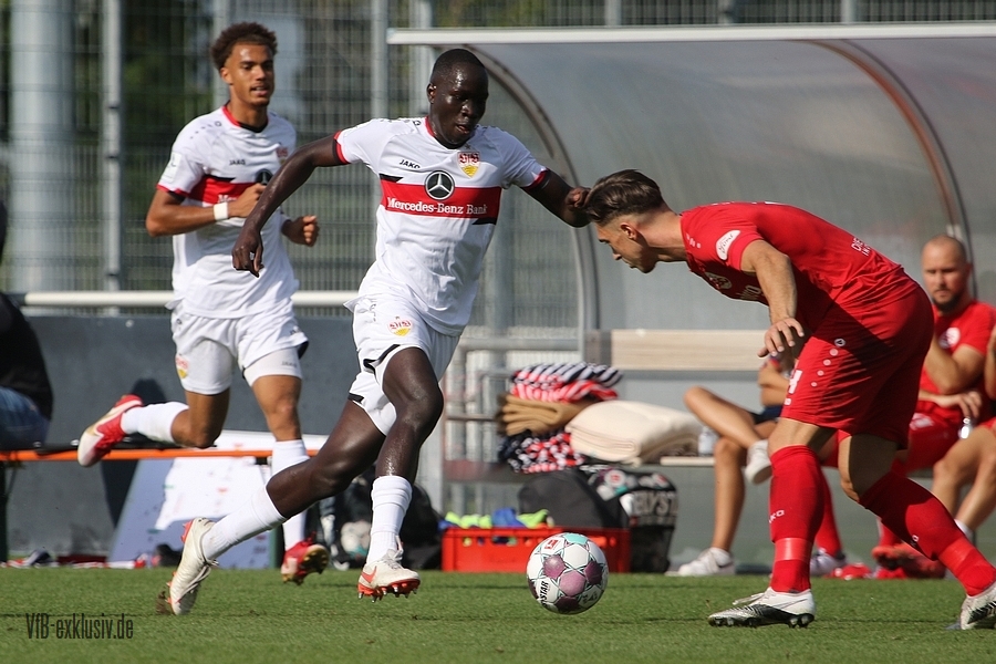 Die Stuttgarter wollten die kleine Serie von drei Siegen in Folge auch gegen Bahlingen fortsetzen. In der Startelf standen zunächst drei Spieler von Pellegrino Matarazzos Profiteam. Nicolas Nartey, Enzo Millot und Wahid Faghir. Der Stürmer musste allerdings nach dem Warm-Up passen. Eine Vorsichtsmaßnahme nachdem er über leichte muskuläre Probleme klagte. So gingen unter den Augen des Cheftrainers Matarazzo und Sportdirektors Mislintat, Millot und Nartey ins Spiel, um der U21 zu helfen und um selbst Spielpraxis zu erhalten. Beide waren sehr aktiv, ballsicher und in Spiellaune, doch der letzte Pass, der überraschende Moment fehlte, um die offensiven Kuol und Polster ins Szene zu setzen. Überraschend hingegen war der Elfmeter, den Bahlingen kurz der Pause zugesprochen bekam. Sebastian Hornung ahnte die Ecke, doch kam nicht mehr an den Ball. Im zweiten Durchgang entwickelten die Jungs von Frank Fahrenhorst mehr Torchancen, die dicksten Gelegenheiten hatten Julian Kudala und Manuel Polster. Bei beiden stand jeweils die Latte im Weg. Auch Enzo Millot und die eingewechselten Moussa Cisse und Ekin Celebi hatten Möglichkeiten zumindest einen Punkt am Wasen zu behalten. Es blieb bei der knappen Niederlage. Der Trainer: “Am Ende müssen wir uns selber an die Nase fassen, denn wir haben nur drei Torschüsse von Bahlingen zugelassen. Wir hatten eine Vielzahl an Torchancen, haben aber leider nicht diese Zielstrebigkeit und Genauigkeit an den Tag gelegt, um ein Tor zu erzielen.”