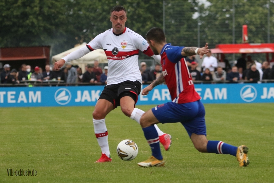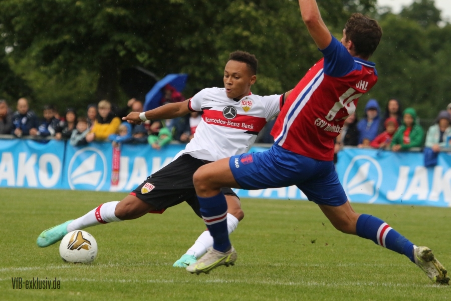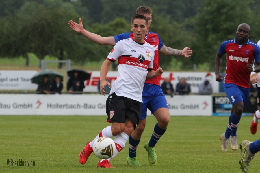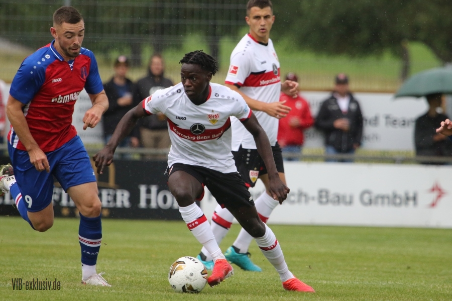 Die Schwaben haben kaum trainiert und schon ging es für die Jungs von Pellegrino Matarazzo beim ersten Test in Hollenbach zur Sache. Beim Jako-Spiel traten sie gegen den ortsansäßigen Verbandsligisten an. Das erste VfB-Tor war ganz im Stil der laufenden EM, ein Eigentor. Doch dann trafen sie in der Folge auch selbst. Mohamed Sankoh legte den zweiten VfB-Treffer nach. Per Elfmeter traf Hamadi Al Ghaddioui, Roberto Massimo wurde im Strafraum zu Fall gebracht. Naouirou Ahamada markiete den 4:0-Halbzeitstand. Im zweiten Durchgang wechselte Matarzzo fast komplett durch. So kam auch Neuzugang Alou Kuol zu seinem Debüt im neuen Brustringtrikot. Der Kapitän der zweiten Halbzeit Philipp Förster sorgte allerdings erstmal für die Tore fünf und sechs. Alou Kuol kam wenig später zu seinem Premierentreffer. Sankoh, der wieder eingewechelt wurde, erzielte sein zweiten Tor, auch Stenzel und Klement kamen nochmals ins Spiel, beide trafen ebenfalls, so dass das Ergebnis für den VfB am Ende zweistellig war. Das vielumjubelte Tor zum zwischenzeitlichen 5:1, hatten sich die Gäste mehr als verdient.